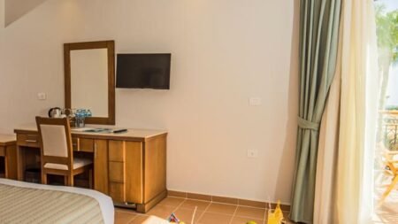 Tijdens je vakantie in Hotel SUNRISE Aqua Joy verblijf je in een moderne, ruime kamer waar je het aan niets zal ontbreken. Vanaf je balkon heb je een prachtig uitzicht over het resort en de Rode Zee. De verschillende restaurants en bars zullen ervoor zorgen dat je ook op culinair gebied niets tekort komt. In het buffetrestaurants staan de lekkerste internationale gerechten voor je klaar waar je iedere avond zo kunt aanschuiven. Heb je een keer trek in iets anders? Schuif dan aan bij een van de à-la-carterestaurants waar je kunt genieten van onder andere de Italiaanse, Arabische, Aziatische en Griekse keuken. Een verfrissende cocktail bestel je bij de bar. Voor ultieme ontspanning ben je bij het wellnesscenter aan juiste adres. Terwijl de kinderen zich vermaken in het zwembad of bij het animatieteam, kom je even tot rust in de sauna en jacuzzi. Enjoy!