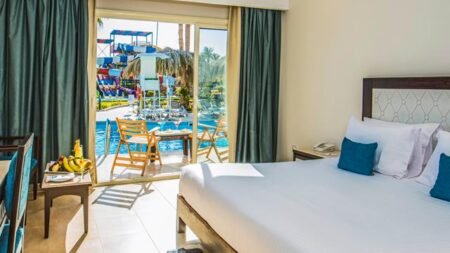 Hotel SUNRISE Aqua Joy Resort is het ideale vakantieadres voor een familievakantie in Hurghada; er is hier genoeg te beleven voor jong en oud! Er zijn genoeg plekjes te vinden om even te ontspannen onder de Egyptische zon en om pret te beleven. Het hotel ligt direct aan de Rode Zee, dus je snorkelset mag zeker niet ontbreken tijdens een stranddag. Houd je niet zo van zand of ben je op zoek naar meer actie? Dan is het waterpark echt iets voor jou! Roetsj van de glijbanen en maak plezier op het waterspeelplein.