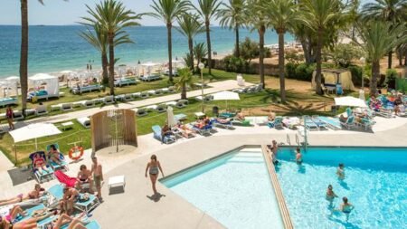 Hotel Vibra Algarb ligt perfect: vanaf het terras, dat om het zwembad heen ligt, loop je zo het schitterende, langgerekte strand van Playa d’en Bossa op. Ook ligt het mooie, moderne hotel temidden van winkels, bars en restaurants.