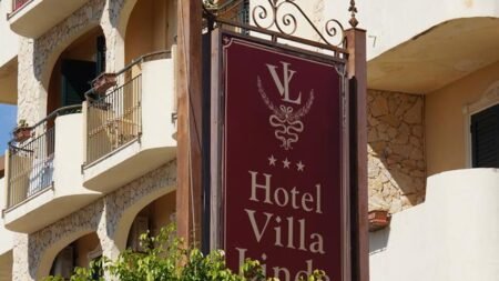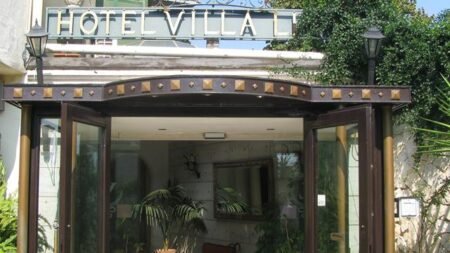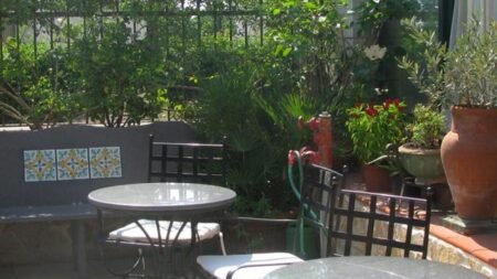 Onze zonnebril gaat altijd al op als we richting Hotel Villa Linda gaan. Want voordat je het hotel binnen gaat, moet je eigenlijk even plaatsnemen op de gietijzeren stoeltjes voor de ingang. Even met je gezicht in de zon zitten is toch wel een hele lekkere manier om je vakantie te beginnen. En het fijne is dat de zon bijna de hele dag op dit terrasje schijnt! Maar het allermooiste aan Villa Linda vinden wij toch echt de ligging. Het hotel ligt bijna direct aan het strand, met een beetje geluk kun je de zee vanaf je balkon al zien liggen! Zo lekker dat je ’s ochtends als je wakker wordt meteen de zeelucht ruikt. We denken nog vaak terug aan dat onbezorgde gevoel dat we kregen op ons balkonnetje in Villa Linda!