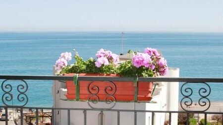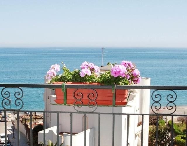 Onze zonnebril gaat altijd al op als we richting Hotel Villa Linda gaan. Want voordat je het hotel binnen gaat, moet je eigenlijk even plaatsnemen op de gietijzeren stoeltjes voor de ingang. Even met je gezicht in de zon zitten is toch wel een hele lekkere manier om je vakantie te beginnen. En het fijne is dat de zon bijna de hele dag op dit terrasje schijnt! Maar het allermooiste aan Villa Linda vinden wij toch echt de ligging. Het hotel ligt bijna direct aan het strand, met een beetje geluk kun je de zee vanaf je balkon al zien liggen! Zo lekker dat je ’s ochtends als je wakker wordt meteen de zeelucht ruikt. We denken nog vaak terug aan dat onbezorgde gevoel dat we kregen op ons balkonnetje in Villa Linda!