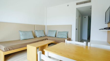 Zomer Wanneer je tussen 01-04-2025 en 31-10-2025 in deze accommodatie verblijft, is onderstaande informatie van toepassing. * Ligging * In het centrum van Playa de Palma * Gelegen aan het openbare strand (Playa de Palma) * Zandstrand * Dichtstbijzijnde winkel op circa 50 meter * Dichtstbijzijnde restaurant op circa 50 meter * Dichtstbijzijnde bar op circa 50 meter * Aquarium op circa 1 kilometer * Aqualand op circa 5 kilometer * Cathedral op circa 10 kilometer * Forestal park op circa 1,5 kilometer * Bushalte op circa 50 meter * Taxistandplaats op circa 50 meter * Algemeen & faciliteiten * 2 gebouwen * Maximaal 6 verdiepingen * 145 kamers * Receptie * 24 uur per dag * Inchecken vanaf 15.00 uur * Uitchecken tot 11.00 uur * Lobby * 2 liften * Bagageruimte * Wifi in alle openbare ruimtes * Wasservice tegen betaling * Doktersservice tegen betaling * Tuin * Openbare parkeergelegenheid * Restaurants & bars * Buffetrestaurant * Drinkgelegenheid * Pool-/snackbar * Activiteiten & ontspanning * Aerobics * Biljart * Fitness * Tafeltennis * Shows * Eén keer per week * Livemuziek * Eén keer per week * Zwembaden * 3 buitenzwembaden * Eén van deze zwembaden is verwarmd tussen ca. dinsdag 1 april 2025 en zaterdag 31 mei 2025 & woensdag 1 oktober 2025 en vrijdag 31 oktober 2025 * Buitenzwembad voor kinderen * Binnenzwembad * Zonneterras * Ligbedden tegen betaling * Badhanddoekenservice tegen betaling * Kinderfaciliteiten * Mini club (3-7 jaar) * Midiclub (8-12 jaar) * Minidisco * Buitenspeeltuin * Babybedje op aanvraag via ons contact center * Verzorging * Logies * Logies & Ontbijt * Ontbijt in buffetvorm * Halfpension * Ontbijt in buffetvorm * Diner in buffetvorm * Goed om te weten * Huisdieren zijn niet toegestaanHotelkamers * 2-kamerappartement Standaard 2AZ * Oppervlakte circa 30 m² * Tuinzicht * Woon-/slaapkamer * Eén slaapkamer * Airconditioning * Kluisje tegen betaling * Televisie * Telefoon tegen betaling * Kitchenette * Magnetron * Broodrooster * Koffie- en theefaciliteiten * Koelkast * Badkamer met bad, toilet en föhn * Wifi * Balkon of terras (zitje) * 2-kamerappartement Superior 2AS * Oppervlakte circa 35 m² * Zwembadzicht * Woon-/slaapkamer * Eén slaapkamer * Airconditioning * Kluisje tegen betaling * Televisie * Telefoon tegen betaling * Kitchenette * Magnetron * Broodrooster * Koffie- en theefaciliteiten * Koelkast * Badkamer met douche, toilet en föhn * Wifi * Balkon of terras (zitje)
