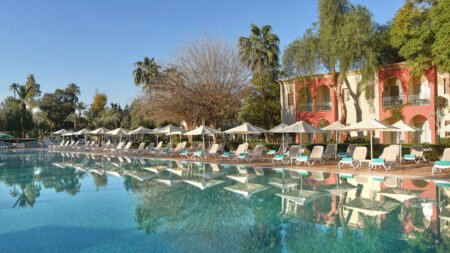 Winter Wanneer je tussen 01-11-2025 en 31-03-2026 in deze accommodatie verblijft, is onderstaande informatie van toepassing. * Ligging * In Palmeraie * Centrum van Marrakech op circa 12 kilometer * Algemeen & faciliteiten * Meerdere gebouwen * Maximaal 2 verdiepingen * 318 kamers * Receptie * 24 uur per dag * Lobby * Bagageruimte * Wifi in alle openbare ruimtes * Winkel * Wasservice tegen betaling * Tuin * Privé parkeergelegenheid * Restaurants & bars * Buffetrestaurant * À-la-carterestaurant (vooraf reserveren) * Marokkaans restaurant * Foodtruck * Roomservice tegen betaling * Meerdere drinkgelegenheden * Lobbybar * 2 poolbars * Activiteiten & ontspanning * Badminton * Basketbal * Boogschieten * Fitness * Tennis * Voetbal * Volleybal * Spa Center * Sauna * Hamam * Massages tegen betaling * Schoonheidsbehandelingen tegen betaling * Animatie voor kinderen * Zwembaden * 2 buitenzwembaden * Bij één van deze zwembaden geldt een minimumleeftijd van 18 jaar * Splashpool voor kinderen * Zonneterras * Ligbedden * Parasol * Badhanddoekenservice gratis met borg * Kinderfaciliteiten * Kids club * Buitenspeeltuin * Verzorging * All Inclusive * Ontbijt in buffetvorm (07.30-10.30 uur) * Lunch in buffetvorm (13.00-15.00 uur) * Diner in buffetvorm (19.00-22.00 uur) * Snacks (12.30-15.00 uur en 16.00-17.30 uur) * Selectie lokale (non-)alcoholische drankjes (10.00-00.00 uur) * Tegen betaling: dineren in het à-la-carterestaurant, import drankjes en roomserviceHotelkamers * 2-persoonskamer (A) D1 * Airconditioning * Kluisje * Televisie * Telefoon tegen betaling * Eet- en drinkfaciliteiten * Minibar tegen betaling * Badkamer douche, toilet en föhn * Wifi * Balkon of terras (zitje) * 2-persoonskamer (B) D2 * Airconditioning * Kluisje * Televisie * Telefoon tegen betaling * Eet- en drinkfaciliteiten * Minibar tegen betaling * Badkamer douche, toilet en föhn * Wifi * Balkon of terras (zitje) * 2-persoonskamer Standaard (Panoramisch uitzicht A) DZ7 * Oppervlakte van circa 23 m² * Airconditioning * Kluisje * Televisie * Telefoon tegen betaling * Eet- en drinkfaciliteiten * Minibar tegen betaling * Badkamer douche, toilet en föhn * Wifi * Balkon of terras (zitje) * 2-persoonskamer Standaard (Panoramisch uitzicht B) DZ8 * Oppervlakte van circa 23 m² * Airconditioning * Kluisje * Televisie * Telefoon tegen betaling * Eet- en drinkfaciliteiten * Minibar tegen betaling * Badkamer douche, toilet en föhn * Wifi * Balkon of terras (zitje) * 2-persoonskamer Standaard (Tuin toegang A) DZ5 * Oppervlakte van circa 23 m² * Tuinzijde * Airconditioning * Kluisje * Televisie * Telefoon tegen betaling * Eet- en drinkfaciliteiten * Minibar tegen betaling * Badkamer douche, toilet en föhn * Wifi * Balkon of terras (zitje) * 2-persoonskamer Standaard (Tuin toegang B) DZ6 * Oppervlakte van circa 23 m² * Tuinzijde * Airconditioning * Kluisje * Televisie * Telefoon tegen betaling * Eet- en drinkfaciliteiten * Minibar tegen betaling * Badkamer douche, toilet en föhn * Wifi * Balkon of terras (zitje) * 2-persoonskamer Standaard (Tuinzicht A) DZ1 * Oppervlakte van circa 23 m² * Tuinzicht * Airconditioning * Kluisje * Televisie * Telefoon tegen betaling * Eet- en drinkfaciliteiten * Minibar tegen betaling * Badkamer douche, toilet en föhn * Wifi * Balkon of terras (zitje) * 2-persoonskamer Standaard (Tuinzicht B) DZ2 * Oppervlakte van circa 23 m² * Tuinzicht * Airconditioning * Kluisje * Televisie * Telefoon tegen betaling * Eet- en drinkfaciliteiten * Minibar tegen betaling * Badkamer douche, toilet en föhn * Wifi * Balkon of terras (zitje) * 2-persoonskamer Standaard (Tuinzicht Priority location A) DZ3 * Oppervlakte van circa 23 m² * Centraal gelegen * Tuinzicht * Airconditioning * Kluisje * Televisie * Telefoon tegen betaling * Eet- en drinkfaciliteiten * Minibar tegen betaling * Badkamer douche, toilet en föhn * Wifi * Balkon of terras (zitje) * 2-persoonskamer Standaard (Tuinzicht Priority location B) DZ4 * Oppervlakte van circa 23 m² * Centraal gelegen * Tuinzicht * Airconditioning * Kluisje * Televisie * Telefoon tegen betaling * Eet- en drinkfaciliteiten * Minibar tegen betaling * Badkamer douche, toilet en föhn * Wifi * Balkon of terras (zitje) * 2-persoonskamer Large (Interconnecting A) DL1 * Twee standaardkamers met tussendeur * Airconditioning * Kluisje * Televisie * Telefoon tegen betaling * Eet- en drinkfaciliteiten * Minibar tegen betaling * Badkamer douche, toilet en föhn * Wifi * Balkon of terras (zitje) * 2-persoonskamer Large (Interconnecting B) DL2 * Twee standaardkamers met tussendeur * Airconditioning * Kluisje * Televisie * Telefoon tegen betaling * Eet- en drinkfaciliteiten * Minibar tegen betaling * Badkamer douche, toilet en föhn * Wifi * Balkon of terras (zitje)