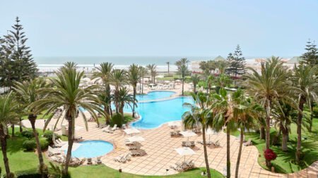 Winter Wanneer je tussen 01-11-2025 en 31-03-2026 in deze accommodatie verblijft, is onderstaande informatie van toepassing. * Ligging * Privéstrand op circa 10 meter * Zandstrand * Aan een promenade * Ligbedden * Parasol * Centrum van Agadir op circa 1 kilometer * Olhao Garden op circa 3 kilometer * Birds Valley op circa 4 kilometer * The Souk el Had op circa 5 kilometer * The City Museum op circa 3 kilometer * Bushalte op circa 450 meter * Algemeen & faciliteiten * 3 gebouwen * Maximaal 5 verdiepingen * 470 kamers * Receptie * 24 uur per dag * Meerdere liften * Lift in elk gebouw * Bagageruimte * Wifi in alle openbare ruimtes * Meerdere winkels * Doktersservice tegen betaling * Tuin * Privé parkeergelegenheid tegen betaling * Restaurants & bars * Buffetrestaurant * Restaurant (vooraf reserveren) * Marokkaans restaurant * 3 drinkgelegenheden * 2 bars * Poolbar * Activiteiten & ontspanning * Basketbal * Beachvolleybal * Boogschieten * Darts * Fitness * Tafeltennis * Tennis * Voetbal * Spa Center * Hamam tegen betaling * Turks stoombad tegen betaling * Bubbelbad binnen tegen betaling * Massages tegen betaling * Schoonheidsbehandelingen tegen betaling * Manicure tegen betaling * Pedicure tegen betaling * Animatie voor volwassenen * Shows * 6 keer per week * Livemuziek * 7 keer per week * Zwembaden * 2 buitenzwembaden * Buitenzwembad voor kinderen * Binnenzwembad * Zonneterras * Ligbedden * Parasol * Badhanddoekenservice tegen betaling * Kinderfaciliteiten * Mini club (4-7 jaar) * Meerdere keren per week * Midiclub (8-12 jaar) * Meerdere keren per week * Teenage club (13-17 jaar) * Verzorging * All Inclusive * Ontbijt in buffetvorm (07.00-10.00 uur) * Lunch in buffetvorm (12.30-14.30 uur) * Diner in buffetvorm (18.30-22.00 uur) * Dineren in het à-la-carterestaurant 1 keer per verblijf * Snacks (12.00-03.00 uur) * Selectie lokale (non-)alcoholische drankjes (08.30-00.00 uur) * Tegen betaling: import drankjesHotelkamers * 2-persoonskamer (A) D1 * 2-persoonskamer (B) D2 * 2-persoonskamer Standaard Zijzeezicht (A) DZ1 * 2-persoonskamer Standaard Zijzeezicht (B) DZ2 * Familiekamer (A) F1 * Familiekamer (B) F2 * Junior suite Standaard (A) JZ1 * Junior suite Standaard (B) JZ2 * Junior suite Standaard Zeezicht (A) JZ3 * Junior suite Standaard Zeezicht (B) JZ4