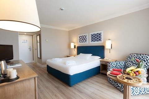 Stijlvol opgezet resort, In een ontspannen groene omgeving, Aquapark voor groot en klein, Kids komen tijd tekort, Direct aan het zandstrand, Onafhankelijk duurzaamheidslabel & inclusief transfers.