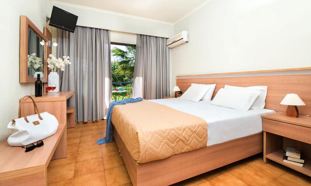 Midden in bruisend Laganas, maar toch heerlijk rustig tussen weelderige tuinen. Op een steenworp van het strand, met kamers die uitkijken over het zwembad of de tuin. Begin je dag met een ontbijt vol verse lekkernijen. Strek je daarna uit onder wuivende palmen, geniet van een verkoelend drankje en dompel jezelf onder in kristalhelder zwembadwater. 's Avonds lonkt Laganas met sfeervol verlichte straatjes, trendy winkels en restaurants waar lokale gerechten je doen watertanden. Hier beleef je een vakantie waar de zon altijd schijnt.