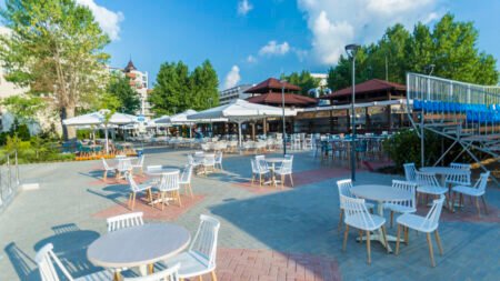 Zomer Wanneer je tussen 01-05-2025 en 30-09-2025 in deze accommodatie verblijft, is onderstaande informatie van toepassing. * Ligging * Openbaar strand op circa 150 meter * Privégedeelte van de accommodatie * Zandstrand * Ligbedden met matrasjes * Dichtstbijzijnde restaurant op circa 50 meter * Dichtstbijzijnde bar op circa 100 meter * Nessebar op circa 3 kilometer * Bushalte op circa 100 meter * Algemeen & faciliteiten * 2 gebouwen * Maximaal 8 verdiepingen * 494 kamers * Receptie * 24 uur per dag * Lobby * 5 liften * Lift in elk gebouw * Bagageruimte * Wifi in diverse openbare ruimtes * Winkel * Wasservice tegen betaling * Doktersservice tegen betaling * Tuin * Privé parkeergelegenheid tegen betaling * Openbare parkeergelegenheid tegen betaling * Restaurants & bars * 2 buffetrestaurants * Themabuffetten * 3 à-la-carterestaurants * Aziatisch restaurant Eén keer per week gratis dineren in dit óf een ander geselecteerd à-la-carterestaurant * Grillrestaurant tegen betaling * Mediterraans restaurant Eén keer per week gratis dineren in dit óf een ander geselecteerd à-la-carterestaurant * Vooraf reserveren * 3 drinkgelegenheden * Bar * 2 lobbybars * Activiteiten & ontspanning * Beachvolleybal * Biljart tegen betaling * Boccia * Darts * Midgetgolf tegen betaling * Tafeltennis * Spa Center * Binnenzwembad * Sauna tegen betaling * Hamam tegen betaling * Bubbelbad binnen * Massages tegen betaling * Fitnessruimte * Animatie * 6 keer per week * Shows * 6 keer per week * Zwembaden * 2 buitenzwembaden * Buitenzwembad voor kinderen * 2 glijbanen * Splashpool voor kinderen * Zonneterras * Ligbedden met matrasjes * Badhanddoekenservice gratis met borg * Kinderfaciliteiten * Mini club (4-12 jaar) * 6 keer per week * Minidisco * Buitenspeeltuin * Babybedje op aanvraag via ons contact center * Verzorging * Ultra All Inclusive * Ontbijt in buffetvorm (07.30-10.00 uur) * Laat ontbijt in buffetvorm (10.00-12.00 uur) * Lunch in buffetvorm (12.00-14.00 uur) * Diner in buffetvorm (18.00-21.00 uur) * Dineren in 2 à-la-carterestaurants 1 keer per verblijf bij een verblijf van minimaal 5 dagen * Snacks (12.00-17.00 uur) * Koffie, thee & koekjes (10.00-00.00 uur) * IJs (12.00-17.00 uur) * Middernachtsnack (01.00-06.00 uur) * Selectie lokale (non-)alcoholische drankjes (24 uur per dag) * Selectie geïmporteerde alcoholische drankjes (11.00-00.00 uur)Hotelkamers * 2-persoonskamer Standaard DZ * Oppervlakte circa 25 m² * In een bijgebouw * Airconditioning * Kluisje * Televisie * Telefoon tegen betaling * Eet- en drinkfaciliteiten * Koelkast * Badkamer met douche, toilet en föhn * Wifi * Balkon of terras (zitje) * 2-persoonskamer Deluxe DD * Oppervlakte circa 30 m² * In het hoofdgebouw * Airconditioning * Kluisje * Televisie * Telefoon tegen betaling * Eet- en drinkfaciliteiten * Koelkast * Badkamer met douche, toilet en föhn * Wifi * Balkon of terras (zitje) * 2-persoonskamer Deluxe Zeezicht DDM * Oppervlakte circa 30 m² * In het hoofdgebouw * Zeezicht * Airconditioning * Kluisje * Televisie * Telefoon tegen betaling * Eet- en drinkfaciliteiten * Koelkast * Badkamer met douche, toilet en föhn * Wifi * Balkon of terras (zitje) * Studio Standaard (Park View) SZ1 * Oppervlakte circa 35 m² * In het hoofdgebouw * Airconditioning * Kluisje * Televisie * Telefoon tegen betaling * Eet- en drinkfaciliteiten * Koelkast * Badkamer met douche, toilet en föhn * Wifi * Balkon of terras (zitje) * 2-kamerappartement Deluxe 2AD * Oppervlakte circa 40 m² * In het hoofdgebouw * Woon-/slaapkamer * Eén slaapkamer * Airconditioning * Kluisje * Televisie * Telefoon tegen betaling * Eet- en drinkfaciliteiten * Koelkast * Badkamer met douche in bad, toilet en föhn * Wifi * Balkon of terras (zitje) * 3-kamerappartement (Family) 3A1 * Oppervlakte circa 45 m² * In het bijgebouw * Op de begane grond * Woon-/slaapkamer * 2 slaapkamers * Airconditioning * Kluisje * Televisie * Telefoon tegen betaling * Eet- en drinkfaciliteiten * Koelkast * Badkamer met douche, toilet en föhn * Wifi * Balkon of terras (zitje)