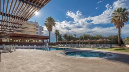 Bij Interpass Vau Hotel & Apartments voel je je meteen thuis! Dit 4-sterrencomplex is de perfecte plek voor een ontspannen vakantie. Gelegen aan de rand van Praia do Vau, tussen Praia da Rocha en Alvor, zit je hier op een toplocatie: op slechts 650 meter van het strand en op 2 minuten rijden van een golfbaan. Je ruime en comfortabele kamer is van alle gemakken voorzien, zodat je zorgeloos kunt genieten. In de groene tuin wachten twee buitenzwembaden op je, eentje voor volwassenen en eentje voor kinderen, plus een leuke speeltuin. Voor een lekkere cocktail of snack hoef je alleen maar naar de bar te lopen. 's Ochtends en 's avonds geniet je in het restaurant van heerlijke gerechten, bereid met lokale ingrediënten door de chef. En als je even wilt ontsnappen naar het strand, dan vind je het prachtige Praia do Vau om de hoek: wit zand, mooie rotskliffen en een kalme zee die uitnodigt tot een verkoelende duik.