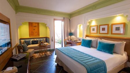Jaal Riad Resort is een adults only verblijf in het hart van Marrakech. Hier geniet je van moderne luxe met Marrokkaanse charme, midden in de bruisende stad. Ontspan in de tuin, neem een duik in één van de twee zwembaden of ervaar de sfeer van de omgeving op het dakterras. De stijlvolle kamers en suites combineren comfort met authentieke details, waardoor je helemaal tot rust komt na een dag vol indrukken.