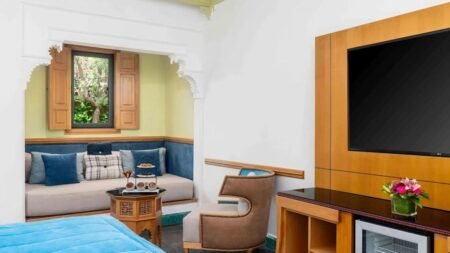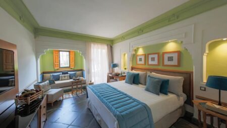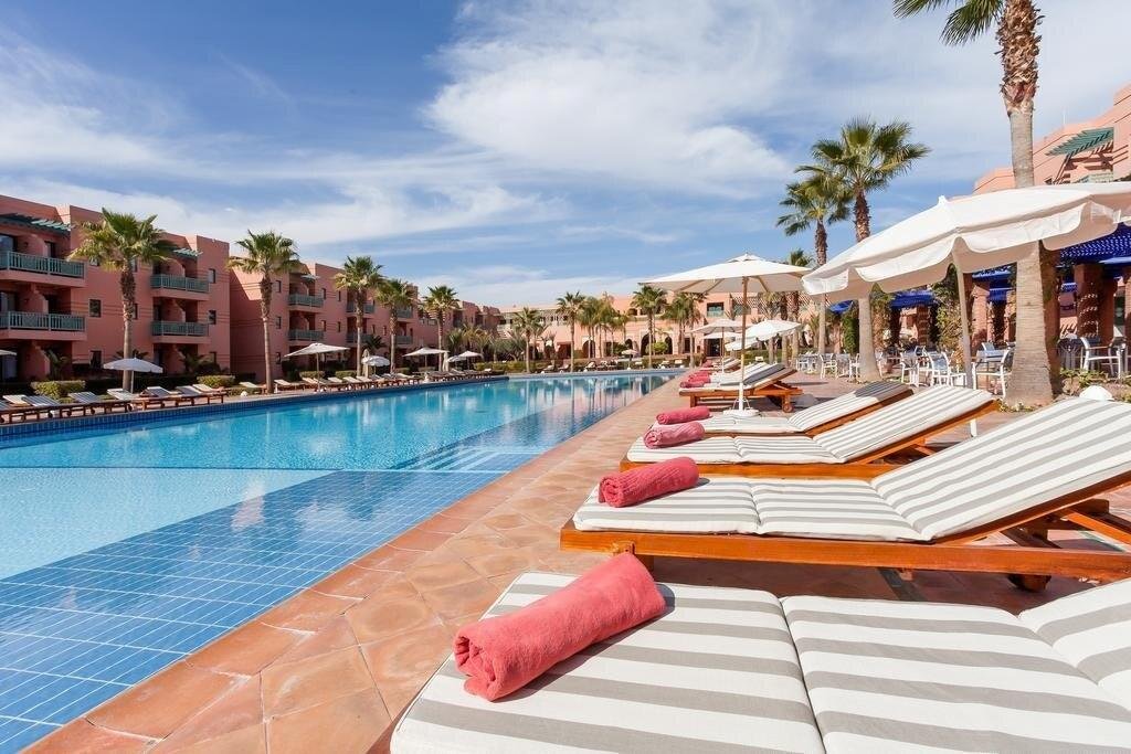 Aan de rand van bruisend Marrakech ligt een stijlvol Adults Only resort waar ontspannen vanzelf gaat. Je verblijft in moderne kamers met Marokkaanse accenten en een uitzicht om van te dromen. Neem een verfrissende duik in één van de zwembaden, kom tot rust in de spa of maak plannen voor een avond vol smaak. Het buffet is een wereldreis langs Thaise, Peruaanse, Indiase en Libanese keukens. Of dineer bij The Cat, waar oosterse gerechten en loungy vibes samenkomen. Sluit je dag af in de bar met Britse flair – met een goed glas whisky of een koud Engels biertje.