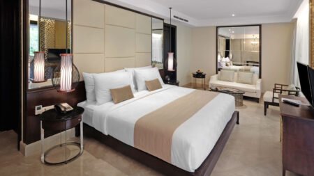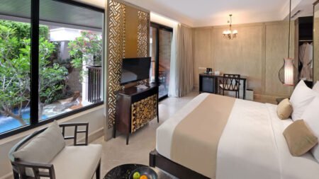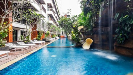 Het 4-sterrenhotel Jambuluwuk Oceano Seminyak ligt in het hart van Seminyak en op loopafstand van het strand. Het resort biedt volop faciliteiten voor een heerlijk ontspannen vakantie, zoals 2 zwembaden, een restaurant op het dak, een Spa Center en een tropische tuin. In Jambuluwuk Oceano Seminyak is het heerlijk relaxen en in de avond kun je het uitgaansleven van Seminyak ontdekken welke zich direct buiten hotel hotel afspeelt.