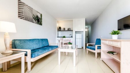 Jardin del Atlantico is de perfecte uitvalsbasis voor een betaalbare en zonnige vakantie op Gran Canaria. Dit bekende en geliefde appartementencomplex ligt op loopafstand van het strand en het centrum van Playa del Inglés. Hier vind je gezellige winkeltjes en sfeervolle restaurants, waar je de authentieke Canarische keuken proeft. Het complex heeft maar liefst 3 buitenzwembaden en een speciaal kinderbad. Zin in wat actie? Sla een balletje op de tennisbaan of troef je tegenstander af met biljarten. Een vakantie in Jardin del Atlantico zorgt ervoor dat jij heerlijk kunt ontspannen.