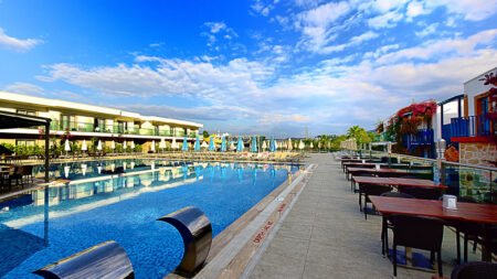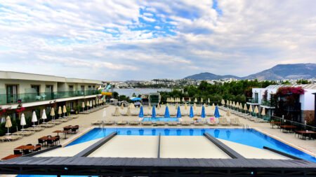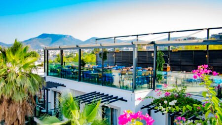 Jasmin Beach Hotel ligt op een toplocatie aan de baai van Gümbet, vlak bij Bodrum en op loopafstand van het strand, gezellige restaurants en leuke bars. De witte gebouwen in typische Bodrum-stijl, omringd door groene tuinen, zorgen direct voor een ontspannen sfeer. Je kunt kiezen uit meerdere zwembaden, terwijl de kinderen zich vermaken op de glijbanen. Vanaf het terras kijk je uit over de baai en geniet je elke avond van een prachtige zonsondergang. Het vriendelijke personeel staat altijd voor je klaar en zorgt ervoor dat je vakantie tot in de puntjes geregeld is. Of je nu bij het zwembad ligt, een drankje haalt aan de bar of met je voeten in het zand staat, Jasmin Beach Hotel biedt alles voor een relaxte en gezellige tijd in Turkije.