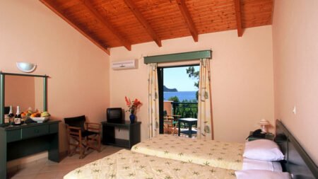 Winter Wanneer je tussen 15-04-2025 en 31-10-2026 in deze accommodatie verblijft, is onderstaande informatie van toepassing. * Ligging * Openbaar strand op circa 150 meter * Zandstrand * Dichtstbijzijnde winkel op circa 400 meter * Dichtstbijzijnde restaurant op circa 400 meter * Dichtstbijzijnde bar op circa 500 meter * Agios Sostis op circa 400 meter * Zakynthos stad op circa 12 kilometer * Algemeen & faciliteiten * Rustig complex * 1 gebouw * Maximaal 2 verdiepingen * 21 kamers * Geen receptie aanwezig * Geen liften * Bagageruimte * Wifi in alle openbare ruimtes * Tuin * Openbare parkeergelegenheid * Restaurants & bars * Snackbar * Zwembaden * Buitenzwembad * Zoetwater * Zonneterras * Ligbedden gratis * Parasol gratis * Kinderfaciliteiten * Babybedje op aanvraag via ons contact center * Verzorging * Logies * Goed om te weten * Deze accommodatie is niet geschikt voor mensen die slecht ter been zijn * De transferbus kan de accommodatie niet bereiken en stopt op een afstand van circa 300 meterHotelkamers * Studio Standaard S1 * Oppervlakte van circa 32 m² * Airconditioning tegen betaling * Kluisje tegen betaling * Televisie * Kitchenette * 2-pits kooktoestel * Waterkoker * Koelkast * Badkamer met douche en toilet * Wifi * Balkon of terras (zitje) * Studio Standaard S2 * Oppervlakte tussen 32 en 40 m² * Airconditioning tegen betaling * Kluisje tegen betaling * Televisie * Kitchenette * 2-pits kooktoestel * Waterkoker * Koelkast * Badkamer met douche en toilet * Wifi * Balkon of terras (zitje) * Studio Standaard SZ * Oppervlakte van circa 28 m² * Tuin-of zeezicht * Airconditioning tegen betaling * Kluisje tegen betaling * Televisie * Kitchenette * 2-pits kooktoestel * Waterkoker * Koelkast * Badkamer met douche en toilet * Wifi * Balkon (zitje)