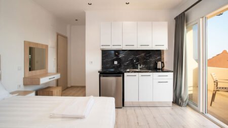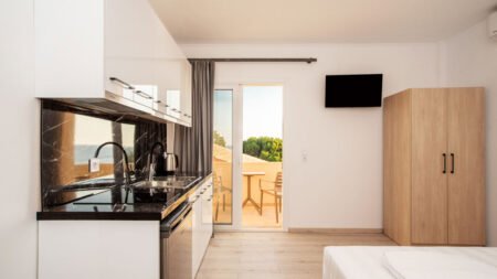 Kamelia Sea Side Apartments is een kleinschalig toevluchtsoord in het idyllische Agios Georgios op het prachtige eiland Corfu. Hier ervaar je nog echte traditionele Griekse gastvrijheid in een gemoedelijke omgeving. Afkoelen doe je in het ruime zwembad bij het Kamelia Appartementen, op zo'n 350 meter en vanuit Kamelia Sea Side Apartments lig je ook zó op het 5 kilometer lange zandstrand. In de moderne, comfortabele studio's voelt iedereen zich al snel thuis. Toe aan wat gezelligheid? Op een paar minuten wandelen vind je sfeervolle (Griekse) restaurants, bars en terrasjes.