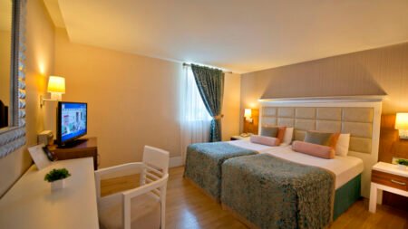 Het Kamelya Selin Hotel (voorheen Sentido Kamelya Selin Hotel) is onderdeel van Kamelya Aishen K Club Resort en biedt een scala aan activiteiten, ligt op een mooie locatie en heeft service van een hoog niveau. Het hotel is perfect voor jouw gezinsvakantie! Je hebt vanuit het hotel directe toegang tot het strand, een waterpark met meerde glijbanen en verschillende zwembaden. Er zijn activiteiten voor jong en oud. Relax in de spa terwijl de kids vermaakt worden in de miniclub of neem deel aan een van de vele sportfaciliteiten. Het buffetrestaurant serveert favoriete gerechten, heerlijke Turkse specialiteiten en als dat nog niet genoeg is kun je óók nog dineren in een van de 5 à-la-carterestaurants en genieten van 24/7 drankjes met het Ultra All Inclusive concept. Dit alles bij elkaar maakt je vakantie bij voorbaat al geslaagd! Beleef het zelf in Kamelya Selin Hotel.
