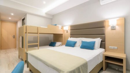 Zomer Wanneer je tussen 01-05-2025 en 31-10-2025 in deze accommodatie verblijft, is onderstaande informatie van toepassing. * Ligging * Openbaar strand Tsilivi Beach op circa 300 meter * Dichtstbijzijnde restaurant op circa 100 meter * Zakynthos-Stad op circa 4 kilometer * Bushalte op circa 100 meter * Algemeen & faciliteiten * 5 gebouwen * Maximaal 3 verdiepingen * 134 kamers * Receptie * 24 uur per dag * Lobby * 4 liften * Bagageruimte * Wifi in alle openbare ruimtes * Wasservice tegen betaling * Doktersservice tegen betaling * Tuin * Privé parkeergelegenheid * Openbare parkeergelegenheid * Restaurants & bars * Buffetrestaurant * À-la-carterestaurant * tegen bijbetaling * Roomservice tegen betaling * 2 drinkgelegenheden * 2 poolbars * Activiteiten & ontspanning * Biljart tegen betaling * Darts * Tafeltennis * Tafelvoetbal tegen betaling * Spa Center * Sauna * Kapsalon tegen betaling * Fitnessruimte * Animatie * 6 keer per week * Animatie voor kinderen * 3 keer per week in het hoogseizoen * Livemuziek * Eén keer per week * Zwembaden * 2 buitenzwembaden * Buitenzwembad voor kinderen * Zonneterras * Ligbedden gratis * Parasol gratis * Badhanddoekenservice tegen betaling en met borg * Kinderfaciliteiten * Buitenspeeltuin * Babybedje op aanvraag via ons contact center * Verzorging * All Inclusive * Ontbijt in buffetvorm (07.00-10.00 uur) * Lunch in buffetvorm (12.30-14.30 uur) * Diner in buffetvorm (18.30-21.30 uur) * Snacks (11.00-18.00 uur) * Koffie, thee & koekjes (10.00-23.00 uur) * IJs (11.00-18.00 uur) * Selectie lokale (non-)alcoholische drankjes (10.00-23.00 uur) * Niet inbegrepen: * Dineren in het à-la-carterestaurantHotelkamers * 2-persoonskamer Standaard DZ * Oppervlakte circa 18 m² * Tuinzicht * Airconditioning * Kluisje * Satelliettelevisie * Telefoon tegen betaling * Eet- en drinkfaciliteiten * Koffie- en theefaciliteiten * Mini koelkast * Badkamer met bad of douche, toilet en föhn * Wifi * Balkon (zitje) * 2-persoonskamer Standaard DZ1 * 2-persoonskamer Standaard Zwembadzicht DZ2 * 2-persoonskamer Standaard Zwembadzicht DZP * Oppervlakte circa 18 m² * Zwembadzicht * Airconditioning * Kluisje * Satelliettelevisie * Telefoon tegen betaling * Eet- en drinkfaciliteiten * Koffie- en theefaciliteiten * Mini koelkast * Badkamer met bad of douche, toilet en föhn * Wifi * Balkon (zitje) * Familiekamer Standaard FZ * Oppervlakte circa 20 m² * Tuin- of zwembadzicht * Airconditioning * Kluisje * Satelliettelevisie * Telefoon tegen betaling * Eet- en drinkfaciliteiten * Koffie- en theefaciliteiten * Mini koelkast * Badkamer met bad of douche, toilet en föhn * Wifi * Balkon (zitje) * Familiekamer Suite FU * Oppervlakte circa 30 m² * Zwembadzicht * Woon-/slaapkamer * Eén slaapkamer * Airconditioning * Kluisje * Satelliettelevisie * Telefoon tegen betaling * Eet- en drinkfaciliteiten * Koffie- en theefaciliteiten * Mini koelkast * Badkamer met inloopdouche, toilet en föhn * Wifi * Balkon (zitje)