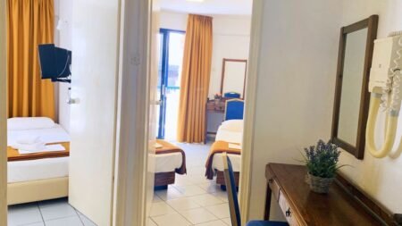Zomer Wanneer je tussen 01-05-2025 en 31-10-2025 in deze accommodatie verblijft, is onderstaande informatie van toepassing. * Ligging * In het centrum van Chersonissos * Openbaar strand op circa 10 meter * Zandstrand * Aan een boulevard * Dichtstbijzijnde restaurant op circa 50 meter * Dichtstbijzijnde bar op circa 300 meter * Aquaworld Aquarium op circa 300 meter * Reptile Rescue Center op circa 300 meter * Bushalte op circa 20 meter * Luchthaven * Luchthaven van Heraklion op circa 23 kilometer * Algemeen & faciliteiten * 4 gebouwen * Maximaal 3 verdiepingen * 163 kamers * Receptie * 24 uur per dag * Lobby * 3 liften * Niet in elk gebouw een lift * Bagageruimte * Wifi in alle openbare ruimtes * Hoge snelheid * Winkel * Tuin * Privé parkeergelegenheid * Openbare parkeergelegenheid * Restaurants & bars * Buffetrestaurant tegen betaling * Meerdere drinkgelegenheden * 2 poolbars tegen betaling * Zwembaden * 4 buitenzwembaden * Zoetwater * Buitenzwembad voor kinderen * Zoetwater * Zonneterras * Ligbedden met matrasjes * Parasol * Kinderfaciliteiten * Babybedje op aanvraag via ons contact center * Verzorging * Logies * Logies & Ontbijt * Ontbijt in buffetvorm * Goed om te weten * Verplichte borg bij het inchecken: 100,00 Euro per persoonHotelkamers * Studio Standaard Stadszicht SZ2 * Oppervlakte circa 28 m² * Stadszicht * Straatzicht * Woon-/slaapkamer * Airconditioning * Kluisje tegen betaling * Satelliettelevisie * Kitchenette * 1-pits kooktoestel * Magnetron * Koelkast * Badkamer met douche, toilet en föhn * Wifi * Balkon of terras (zitje) * Studio Standaard Zeezicht SZM * Oppervlakte circa 20 m² * Zeezicht * Woon-/slaapkamer * Airconditioning * Kluisje tegen betaling * Satelliettelevisie * Kitchenette * 1-pits kooktoestel * Magnetron * Koelkast * Badkamer met douche, toilet en föhn * Wifi * Balkon of terras (zitje) * 2-kamerappartement Stadszicht 2A1 * Oppervlakte circa 42 m² * Stadszicht * Straatzicht * Woon-/slaapkamer * Eén slaapkamer * Airconditioning * Kluisje tegen betaling * Satelliettelevisie * Kitchenette * 1-pits kooktoestel * Magnetron * Koelkast * Badkamer met douche, toilet en föhn * Wifi * Balkon of terras (zitje) * 2-kamerappartement Stadszicht 2A3 * Oppervlakte circa 46 m² * Stadszicht * Straatzicht * Woon-/slaapkamer * Eén slaapkamer * Airconditioning * Kluisje tegen betaling * Satelliettelevisie * Kitchenette * 1-pits kooktoestel * Magnetron * Koelkast * Badkamer met douche, toilet en föhn * Wifi * Balkon of terras (zitje) * 2-kamerappartement Stadszicht 2A5 * Oppervlakte circa 56 m² * Stadszicht * Straatzicht * Twee standaardkamers met tussendeur * Airconditioning * Kluisje tegen betaling * Satelliettelevisie * Kitchenette * 1-pits kooktoestel * Magnetron * Koelkast * Badkamer met douche, toilet en föhn * Wifi * Balkon of terras (zitje) * 2-kamerappartement Zeezicht 2A2 * Oppervlakte circa 46 m² * Zeezicht * Woon-/slaapkamer * Eén slaapkamer * Airconditioning * Kluisje tegen betaling * Satelliettelevisie * Kitchenette * 1-pits kooktoestel * Magnetron * Koelkast * Badkamer met douche, toilet en föhn * Wifi * Balkon of terras (zitje)