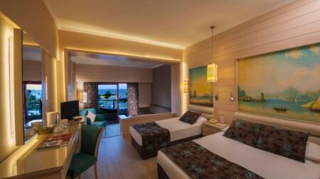 Winter Wanneer je tussen 01-11-2025 en 31-03-2026 in deze accommodatie verblijft, is onderstaande informatie van toepassing. * Ligging * Gelegen aan het openbare strand * Ligbedden met matrasjes * Parasol * Centrum van Kadriye op circa 2 kilometer * Centrum van Belek op circa 7 kilometer * Golfbaan op circa 50 meter * Bushalte op circa 20 meter * Algemeen & faciliteiten * 1 gebouw * Maximaal 6 verdiepingen * 506 kamers * Receptie * 24 uur per dag * Lobby * 5 liften * Bagageruimte * Wifi in alle openbare ruimtes * Meerdere winkels * Minimarkt * Wasservice tegen betaling * Doktersservice tegen betaling * Tuin * Openbare parkeergelegenheid * Privé parkeergelegenheid * Restaurants & bars * Buffetrestaurant * 4 à-la-carterestaurants (vooraf reserveren) * Roomservice tegen betaling * 4 drinkgelegenheden * Activiteiten & ontspanning * Aerobics * Boccia * Darts * Fitness * Tafeltennis * Tennis tegen betaling * Voetbal * Volleybal * Watersporten tegen betaling * Spa Center * Sauna * Hamam * Massages tegen betaling * Schoonheidsbehandelingen tegen betaling * Gameroom * Animatie voor volwassenen * 7 keer per week * Zwembaden * 2 buitenzwembaden * Gesloten in het winterseizoen * Buitenzwembad voor kinderen * Gesloten in het winterseizoen * 4 glijbanen * Binnenzwembad * Verwarmd * Binnenzwembad voor kinderen * Zonneterras * Ligbedden met matrasjes * Parasol * Badhanddoekenservice * Kinderfaciliteiten * Mini club (4-12 jaar) * Teenage club (13-16 jaar) * Open tussen * Minidisco * Buitenspeeltuin * Verzorging * Ultra All Inclusive * Ontbijt in buffetvorm (07.00-10.00 uur) * Laat ontbijt in buffetvorm (10.00-11.00 uur) * Lunch in buffetvorm (12.30-15.30 uur) * Diner in buffetvorm (18.00-21.00 uur) * Snacks (11.00-18.00 uur) * Koffie, thee & koekjes (11.00-18.00 uur) * Middernachtsnack (23.30-07.00 uur) * Selectie geïmporteerde alcoholische drankjes (24 uur per dag) * Selectie lokale (non-)alcoholische drankjes (24 uur per dag) * Tegen betaling: dineren in enkele à-la-carterestaurants, drankjes in flessen, import drankjes, verse vruchtensappen en roomserviceHotelkamers * 2-persoonskamer Standaard Landzicht DZL * Oppervlakte tussen 20 en 30 m² * Landzicht * Airconditioning * Kluisje * Televisie * Telefoon tegen betaling * Eet- en drinkfaciliteiten * Koffie- en theefaciliteiten * Minibar tegen betaling * Badkamer bad of douche, toilet, föhn, badjassen en badslippers * Wifi * Balkon of terras (zitje) * 2-persoonskamer Standaard Zeezicht DZM * Oppervlakte tussen 20 en 30 m² * Zeezicht * Airconditioning * Kluisje * Televisie * Telefoon tegen betaling * Eet- en drinkfaciliteiten * Koffie- en theefaciliteiten * Minibar tegen betaling * Badkamer bad of douche, toilet, föhn, badjassen en badslippers * Wifi * Balkon of terras (zitje) * Suite Standaard UZ * Oppervlakte van circa 50 m² * Tuinzicht * Woon-/slaapkamer * Eén slaapkamer * Airconditioning * Kluisje * Televisie * Telefoon tegen betaling * Eet- en drinkfaciliteiten * Koffie- en theefaciliteiten * Minibar tegen betaling * Badkamer inloopdouche, toilet, föhn, badjassen en badslippers * Wifi * Balkon of terras (zitje)