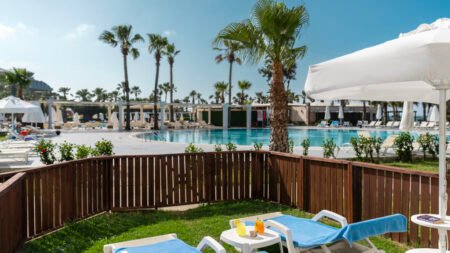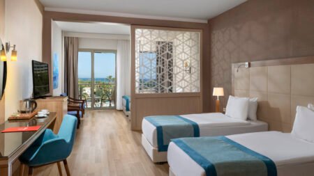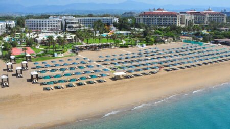 Zomer Wanneer je tussen 01-04-2025 en 31-10-2025 in deze accommodatie verblijft, is onderstaande informatie van toepassing. * Ligging * Gelegen in een bosrijke omgeving * Gelegen aan het privéstrand * Ligbedden met matrasjes * Parasol * Centrum van Manavgat op circa 5 kilometer * Algemeen & faciliteiten * 2 gebouwen * 432 kamers * Receptie * 24 uur per dag * Lobby * 5 liften * Lift in elk gebouw * Bagageruimte * Wifi in alle openbare ruimtes * Winkel (minimarkt) * Wasservice tegen betaling * Doktersservice tegen betaling * Tuin * Openbare parkeergelegenheid * Privé parkeergelegenheid * Restaurants & bars * Buffetrestaurant * 3 à-la-carterestaurants * Barbecue restaurant * Italiaans restaurant * Turks restaurant * Roomservice tegen betaling * 4 drinkgelegenheden * Bar * Beachbar * Lobbybar * Poolbar * Activiteiten & ontspanning * Aerobics * Basketbal * Beachvolleybal * Boccia * Darts * Duikcentrum tegen betaling * Fitness * Tafeltennis * Tennis * Watersporten tegen betaling * Spa Center * Binnenzwembad * Sauna * Hamam * Massages tegen betaling * Schoonheidsbehandelingen tegen betaling * Kapsalon tegen betaling * Animatie * 6 keer per week * Shows * 6 keer per week * Livemuziek * 6 keer per week * Zwembaden * 3 buitenzwembaden * Eén van deze zwembaden heeft 2 glijbanen * De glijbanen hebben verschillende openingsperiodes * Buitenzwembad voor kinderen * Zonneterras * Ligbedden met matrasjes * Parasol * Badhanddoekenservice * Kinderfaciliteiten * Mini club (4-12 jaar) * Midiclub (7-12 jaar) * Minidisco * Buitenspeeltuin * Babybedje * Babysitservice tegen betaling * ter plaatse op aanvraag * Verzorging * Ultra All Inclusive * Ontbijt in buffetvorm (07.00-10.00 uur) * Laat ontbijt in buffetvorm (10.00-11.00 uur) * Lunch in buffetvorm (12.30-14.30 uur) * Diner in buffetvorm (18.30-21.00 uur) * Snacks (12.30-15.30 uur) * Koffie, thee & koekjes (11.00-18.00 uur) * Middernachtsnack (23.00-00.00 uur) * Selectie geïmporteerde drankjes * Selectie lokale (non-)alcoholische drankjes (24 uur per dag) * Tegen betaling: drankjes in flessen en verse vruchtensappenHotelkamers * 2-persoonskamer Standaard Landzicht DZL * Oppervlakte van circa 25 m² * Landzicht * Airconditioning * Kluisje * Televisie * Telefoon tegen betaling * Eet- en drinkfaciliteiten * Koffie- en theefaciliteiten * Minibar * Dagelijks aangevuld met water en frisdrank * Badkamer douche, toilet, föhn en badslippers * Wifi * Balkon (zitje) * 2-persoonskamer Standaard Zeezicht DZM * Oppervlakte van circa 25 m² * Zeezicht * Airconditioning * Kluisje * Televisie * Telefoon tegen betaling * Eet- en drinkfaciliteiten * Koffie- en theefaciliteiten * Minibar * Dagelijks aangevuld met water en frisdrank * Badkamer douche, toilet, föhn en badslippers * Wifi * Balkon (zitje) * 2-persoonskamer Superior Tuinzicht DSG * Oppervlakte van circa 45 m² * Tuinzicht * Airconditioning * Kluisje * Televisie * Telefoon tegen betaling * Eet- en drinkfaciliteiten * Koffie- en theefaciliteiten * Minibar * Dagelijks aangevuld met water en frisdrank * Badkamer bad en douche, toilet, föhn en badslippers * Wifi * Balkon (zitje) * 2-persoonskamer Superior Zwembadzicht DSP * Oppervlakte van circa 45 m² * Zwembadzicht * Airconditioning * Kluisje * Televisie * Telefoon tegen betaling * Eet- en drinkfaciliteiten * Koffie- en theefaciliteiten * Minibar * Dagelijks aangevuld met water en frisdrank * Badkamer bad en douche, toilet, föhn en badslippers * Wifi * Balkon (zitje) * 2-persoonskamer Superior Meerzicht DSK * Oppervlakte van circa 45 m² * Beekzicht * Airconditioning * Kluisje * Televisie * Telefoon tegen betaling * Eet- en drinkfaciliteiten * Koffie- en theefaciliteiten * Minibar * Dagelijks aangevuld met water en frisdrank * Badkamer bad en douche, toilet, föhn en badslippers * Wifi * Balkon (zitje) * Familiekamer Suite FU * Oppervlakte van circa 35 m² * Landzicht * Airconditioning * Kluisje * Televisie * Telefoon tegen betaling * Eet- en drinkfaciliteiten * Koffie- en theefaciliteiten * Minibar * Dagelijks aangevuld met water en frisdrank * Badkamer bad of douche, toilet, föhn en badslippers * Wifi * Balkon (zitje) * Child Friendly Room Superior Rivierzicht CF2 * Child Friendly Room Superior Zwembadzicht CF1