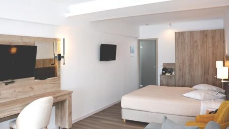 Dit 4 sterrenhotel is de perfecte uitvalsbasis voor je avontuur in Kos stad. Midden in het centrum, met een fantastisch uitzicht op de haven en het kasteel. Ruime kamers, modern comfort en Griekse gastvrijheid maken het extra fijn. Het dakterras? Daar wacht een zwembad en een bar met een heerlijk uitzicht op je. Alles is dichtbij het bruisende stadsleven, archeologische pareltjes en de mooiste stranden. Begin je dag met een lokaal ontbijt of plof neer in de bar voor een verfrissend drankje. Kortom, comfort én de charme van Kos in één!