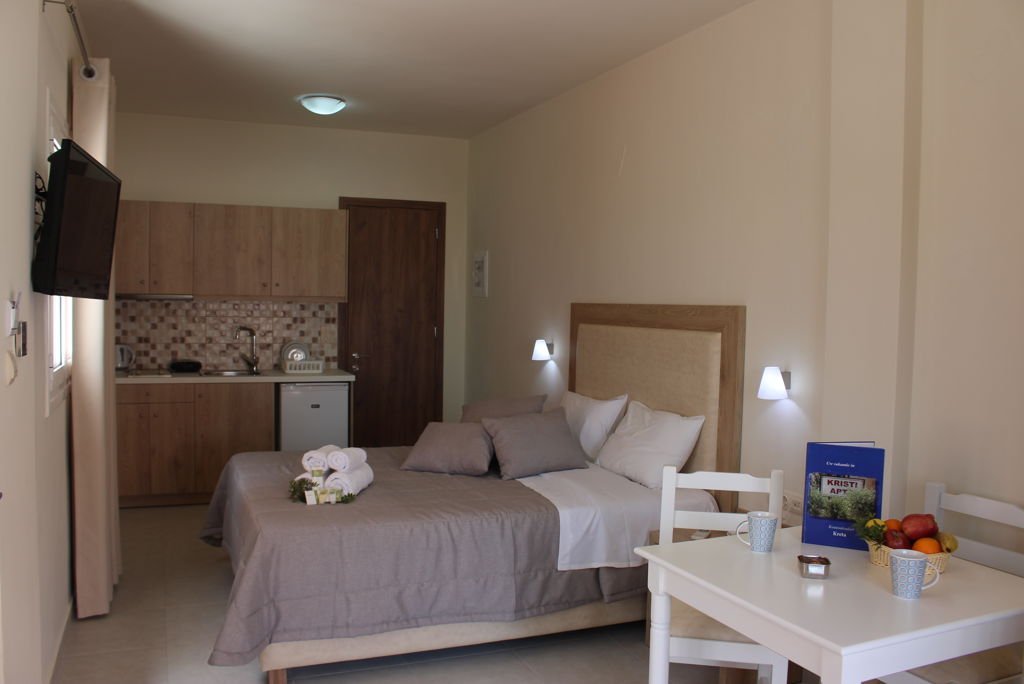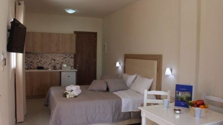 Welkom bij Kristi Appartementen, een gezellig appartementencomplex in Koutouloufari op Kreta, gerund door de gastvrije familie Latsoudi. Gunstig gelegen op slechts 1 kilometer van het populaire Star Beach en op 800 meter van Chersonissos, biedt het appartementencomplex een ontspannen uitvalsbasis voor jouw verblijf op dit prachtige eiland. Het complex beschikt over een buitenzwembad en een apart kinderzwembad, waar je even verkoeling kunt zoeken. De poolbar biedt een ontspannen sfeer waar je kunt genieten van verfrissende drankjes terwijl je relaxt aan het zwembad. De moderne studio's en appartementen zijn stijlvol ingericht en bieden alle benodigdheden voor een aangenaam verblijf. Of je nu de lokale bezienswaardigheden wilt verkennen, wilt ontspannen bij het zwembad of de levendige sfeer van Chersonissos wilt ervaren, bij Kristi Appartementen staat de familie Latsoudi klaar om jou te verwelkomen in een warme en vriendelijke omgeving voor een onvergetelijke vakantie! TIP: boek deze vakantie als Fly & Go * Gemak voorop: pakketreis met vlucht + deze accommodatie + huurauto * De verzekering voor je auto is geregeld * Vrijheid en avontuur: ontdek in je eigen tempo je vakantiebestemming Bekijk deze Fly & Go vakantie ()