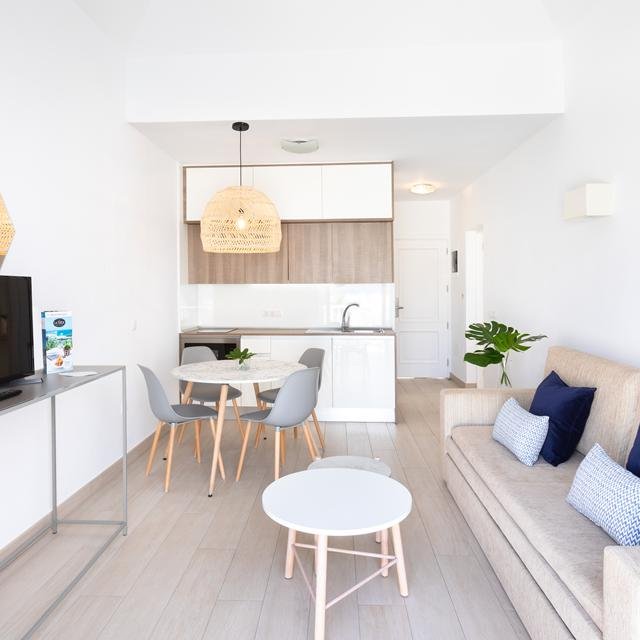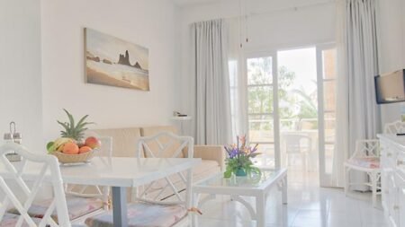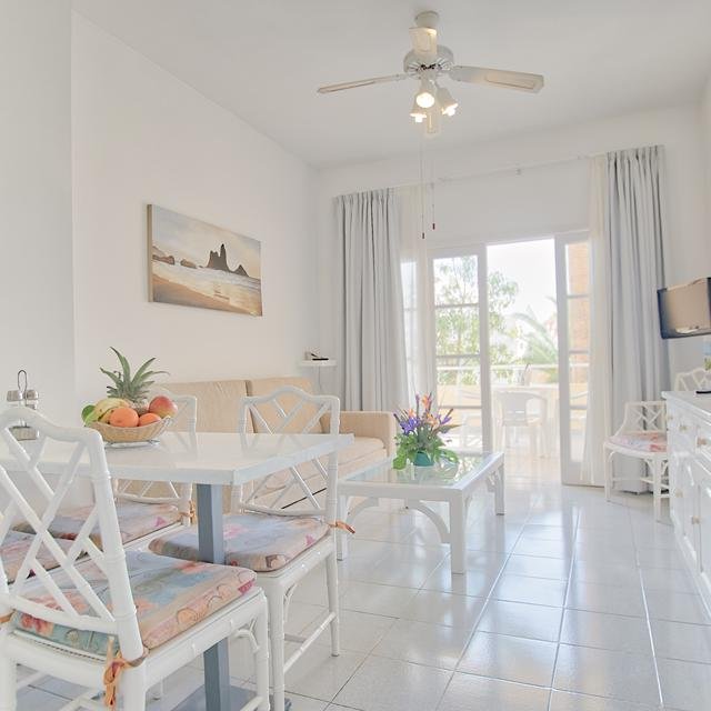 De appartementen van Lagos de Fañabe Beach Resort zijn ruim en omgeven door een tropisch tuin met palmbomen. Twee schitterende zwembaden in de vorm van een rivier sieren de rest van dit vakantieoord. Wat is het toch heerlijk om een middagdutje te doen op een van de ligbedjes. Tussen het zonnen door, kun je terecht bij de poolbar voor je favoriete cocktail of een hartige snack.