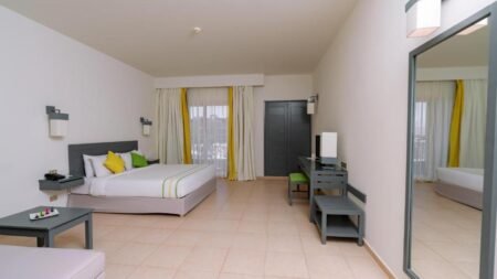 Midden in Makadi Bay verwelkomt dit hotel je met citrusfrisse vibes. Dit vrolijke All Inclusive hotel is perfect voor koppels en families die onvergetelijke momenten willen beleven. Stap binnen in een wereld van levendige geel groene kleuren die je instant vrolijk maken. Geniet van heerlijke maaltijden in diverse restaurants, doe mee aan toffe activiteiten en laat je 's avonds vermaken door spetterende shows. Met de handige shuttle sta je zo op het strand, waar de azuurblauwe zee en kleurrijke onderwaterwereld op je wachten. Hier draait alles om plezier, comfort en die onmiskenbare vakantievibe die je nog lang bijblijft.