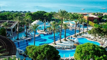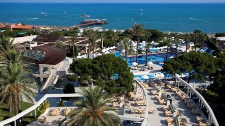 Dit hotel in Belek is een waar waterparadijs waar je van zwembad naar zwembad zwemt. Dit luxe resort ligt direct aan het brede zandstrand van de Turkse Rivièra, waar je heerlijk luiert onder een parasol. Tussen het zwemmen door geniet je van authentieke Turkse mezze op een van de terrassen, of je proeft een verfrissende ayran bij de bar. De kids vermaken zich urenlang in de kids club met animatie, terwijl jij ontspant in de wellness. Dit resort ademt Turkse gastvrijheid, van de glimlach bij het ontbijt tot de verse muntthee die je krijgt aangeboden. En na een dag vol zon? Dan schuif je aan voor verse vis bij het à la carte restaurant. Dit All Inclusive resort in Belek combineert Turkse warmte met alle luxe die je zoekt voor een zorgeloze strandvakantie aan de Middellandse Zee.