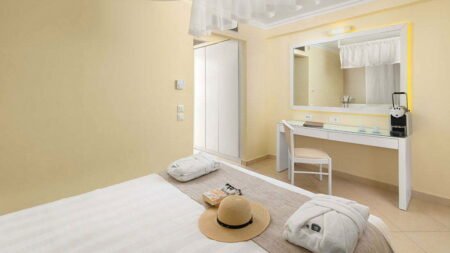 Zomer Wanneer je tussen 01-05-2025 en 31-10-2025 in deze accommodatie verblijft, is onderstaande informatie van toepassing. * Ligging * Gelegen op een heuvel * Openbaar strand op circa 200 meter * Privégedeelte van de accommodatie * Zandstrand * Kiezelstrand * Weg tussen het strand en de accommodatie * Ligbedden met matrasjes gratis * Parasol gratis * Centrum van Rhodos-City op circa 45 kilometer * Dichtstbijzijnde winkel op circa 4 kilometer * Dichtstbijzijnde restaurant op circa 4 kilometer * Dichtstbijzijnde bar op circa 4 kilometer * Prassonisi op circa 46 kilometer * Kallithea Springs op circa 30 kilometer * Lindos op circa 4 kilometer * Shuttleservice naar de luchthaven tegen betaling * Bushalte op circa 600 meter * Taxistandplaats * Algemeen & faciliteiten * Adults Only * 5 gebouwen * Maximaal 3 verdiepingen * 193 kamers * Receptie * 24 uur per dag * Inchecken * Uitchecken * Lobby * 2 liften * Niet in elk gebouw een lift * Bagageruimte * Wifi in alle openbare ruimtes gratis * Winkel (minimarkt) * Wasservice tegen betaling * Doktersservice tegen betaling * op aanvraag * Tuin * Openbare parkeergelegenheid gratis * Restaurants & bars * Buffetrestaurant * 3 à-la-carterestaurants * Aziatisch restaurant * Mediterraans restaurant * Restaurant met internationale specialiteiten * Snackbar * Patisserie * Roomservice tegen betaling * 2 drinkgelegenheden * Cocktailbar * Poolbar * Activiteiten & ontspanning * Aerobics gratis * Duikcentrum tegen betaling * Fitness gratis * Tennis gratis * Watersporten * Yoga gratis * Spafaciliteiten * Sauna tegen betaling * Bubbelbad binnen tegen betaling * Massages tegen betaling * Schoonheidsbehandelingen tegen betaling * Animatie voor volwassenen * Meerdere keren per week * Livemuziek * Meerdere keren per week * Zwembaden * Buitenzwembad * Zoetwater * Bubbelbad binnen * Zonneterras * Ligbedden met matrasjes gratis * Parasol gratis * Badhanddoekenservice gratis * Verzorging * Logies & Ontbijt * Ontbijt in buffetvorm (07.30-10.30 uur) * Halfpension * Ontbijt in buffetvorm (07.30-10.30 uur) * Diner in buffetvorm of à la carte (19.00-22.30 uur) * Goed om te weten * Deze accommodatie is niet geschikt voor mensen die slecht ter been zijn * Duurzaamheidslabel(s): Travelife * Huisdieren zijn niet toegestaanHotelkamers * 2-persoonskamer Deluxe Tuinzicht DDG * Oppervlakte circa 25 m² * Tuinzicht * Airconditioning gratis * Kluisje gratis * Satelliettelevisie gratis * Telefoon tegen betaling * Eet- en drinkfaciliteiten * Koffie- en theefaciliteiten gratis * Mini koelkast gratis * Minibar tegen betaling * Badkamer met bad of douche, toilet, föhn, badjassen en badslippers * Wifi gratis * Balkon of terras (zitje) * 2-persoonskamer Deluxe Zeezicht DDM * Oppervlakte circa 25 m² * Zeezicht * Airconditioning gratis * Kluisje gratis * Satelliettelevisie gratis * Telefoon tegen betaling * Eet- en drinkfaciliteiten * Koffie- en theefaciliteiten gratis * Mini koelkast gratis * Minibar tegen betaling * Badkamer met bad of douche, toilet, föhn, badjassen en badslippers * Wifi gratis * Balkon of terras (zitje) * 2-persoonskamer Terras Zeezicht DTM * Oppervlakte circa 25 m² * Zeezicht * Airconditioning gratis * Kluisje gratis * Satelliettelevisie gratis * Telefoon tegen betaling * Eet- en drinkfaciliteiten * Koffie- en theefaciliteiten gratis * Mini koelkast gratis * Minibar tegen betaling * Badkamer met bad of douche, toilet, föhn, badjassen en badslippers * Wifi gratis * Terras (zitje) * Junior suite Standaard Tuinzicht JZG * Oppervlakte circa 30 m² * Tuinzicht * Woon-/slaapkamer met één slaapplaats * Eén slaapkamer * Airconditioning gratis * Kluisje gratis * Satelliettelevisie gratis * Telefoon tegen betaling * Eet- en drinkfaciliteiten * Koffie- en theefaciliteiten gratis * Mini koelkast gratis * Minibar tegen betaling * Badkamer met bad of douche, toilet, föhn, badjassen en badslippers * Wifi gratis * Balkon of terras (zitje) * Junior suite Standaard Zeezicht JZM * Oppervlakte circa 30 m² * Zeezicht * Woon-/slaapkamer met één slaapplaats * Eén slaapkamer * Airconditioning gratis * Kluisje gratis * Satelliettelevisie gratis * Telefoon tegen betaling * Eet- en drinkfaciliteiten * Koffie- en theefaciliteiten gratis * Mini koelkast gratis * Minibar tegen betaling * Badkamer met bad of douche, toilet, föhn, badjassen en badslippers * Wifi gratis * Balkon of terras (zitje)