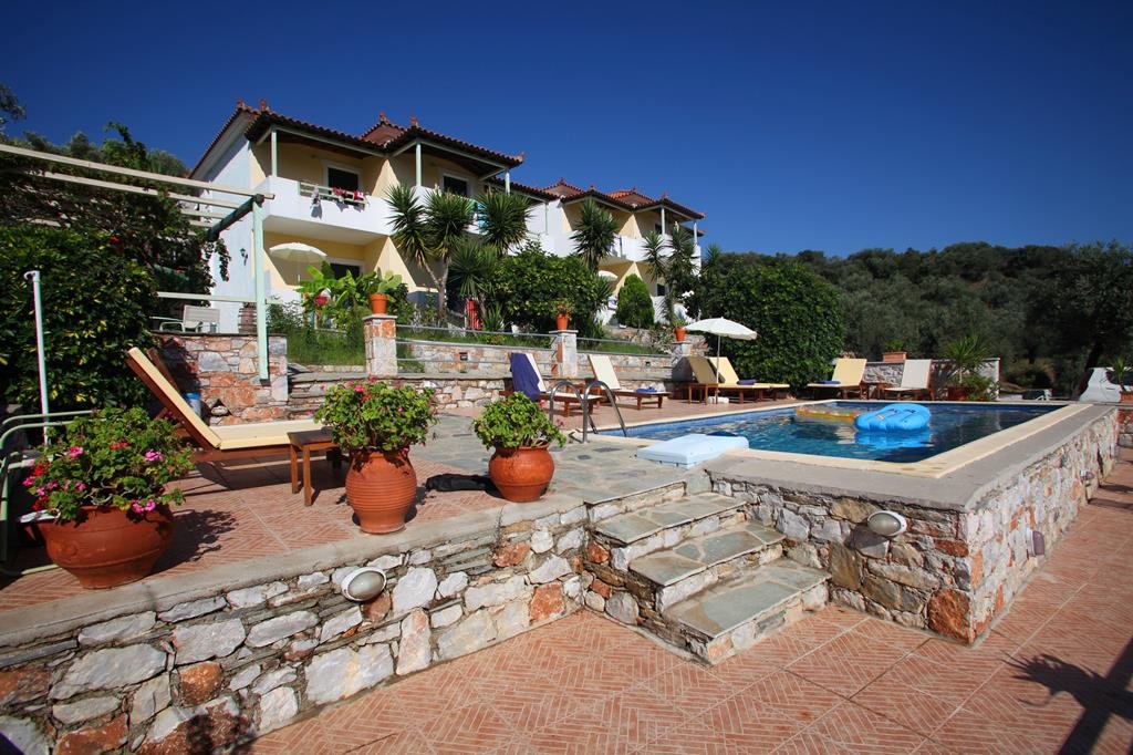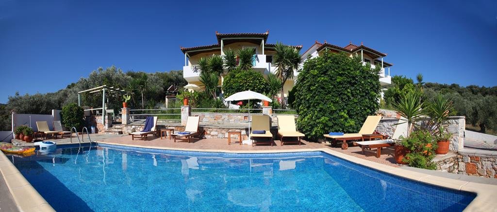Kom helemaal tot rust, Uitzicht op de vallei Stafylos, Eenvoudig, net en verzorgd, Service: Alles voor de gasten, Supermarkt en restaurant om de hoek, Zwembad met uitzicht & inclusief transfers.