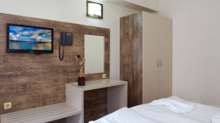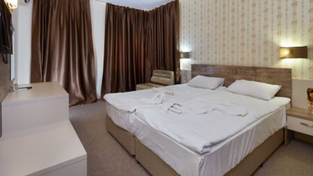 Zomer Wanneer je tussen 25-05-2025 en 30-09-2025 in deze accommodatie verblijft, is onderstaande informatie van toepassing. * Ligging * Openbaar strand beach op circa 200 meter * Zandstrand * Dichtstbijzijnde winkel op circa 200 meter * Dichtstbijzijnde restaurant op circa 50 meter * Dichtstbijzijnde bar op circa 200 meter * Action Aquapark op circa 200 meter * Bushalte op circa 50 meter * Taxistandplaats op circa 50 meter * Algemeen & faciliteiten * 1 gebouw * Maximaal 5 verdiepingen * 42 kamers * Receptie * 24 uur per dag * Lobby met zitgedeelte * Lift * Bagageruimte * Wifi in diverse openbare ruimtes * Openbare parkeergelegenheid tegen betaling * Restaurants & bars * Buffetrestaurant * À-la-carterestaurant * Roomservice tegen betaling * Drinkgelegenheid * Bar * Zwembaden * Buitenzwembad * Zoetwater * Zonneterras * Ligbedden met matrasjes gratis * Parasol gratis * Kinderfaciliteiten * Buitenspeeltuin * Babybedje op aanvraag via ons contact center tegen betaling * Babysitservice * ter plaatse op aanvraag * Verzorging * Logies & Ontbijt * Ontbijt in buffetvormHotelkamers * 2-persoonskamer Standaard DZ * Oppervlakte tussen 24 en 34 m² * Straatzicht * Zwembadzicht * Airconditioning * Televisie * Telefoon tegen betaling * Eet- en drinkfaciliteiten * Minibar tegen betaling * Badkamer met douche, toilet en föhn * Wifi * Balkon of terras (zitje) * Studio Standaard SZ1 * Oppervlakte tussen 35 en 45 m² * Straatzicht * Zwembadzicht * Airconditioning * Televisie * Telefoon tegen betaling * Eet- en drinkfaciliteiten * Minibar tegen betaling * Badkamer met douche, toilet en föhn * Wifi * Balkon of terras (zitje)