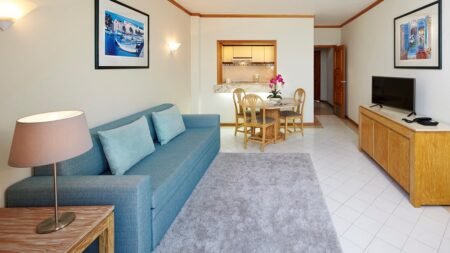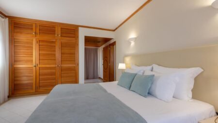 Zodra je de deur uitstapt, sta je bijna op het strand. Na een korte wandeling van 100 meter voel je het warme zand onder je voeten en kijk je uit over de Atlantische Oceaan. Het appartementencomplex ligt in een rustige wijk, maar alles wat je nodig hebt is dichtbij. Ontspan op het zonneterras of neem een frisse duik in het zwembad. In je appartement vind je een kitchenette en een comfortabel bed, zodat je je meteen thuis voelt. De omgeving biedt genoeg om te ontdekken. Wandel naar het uitzichtpunt Pau da Bandeira en geniet van het weidse uitzicht over de kust en stad. In het centrum vind je volop restaurants met lokale gerechten. Zin in een dagje uit? Bezoek dan Zoomarine, een waterpark met shows en attracties, op korte rijafstand. Hier combineer je zon, rust en leuke uitstapjes in een ontspannen vakantie.