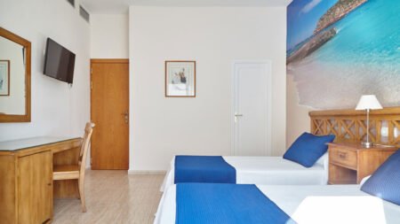 Het 2-sterren hotel Mar Y Huerta ligt op het prachtige eiland Ibiza aan het zandstrand van Es Canar. Op loopafstand van het hotel is niet alleen het strand te vinden, maar ook winkeltjes, restaurantjes en natuurlijk de Hippy Markt! Via een extern bedrijf bij het hotel is er de mogelijkheid om verschillende watersporten te beoefenen. Uiteraard kan er ook gerelaxt worden aan het zwembad of het strand. Het Mar Y Huerta hotel werd in 1958 gebouwd en is 2018 gerenoveerd. Verder is het hotel geschikt voor gezinnen en stellen. In de omgeving is er namelijk genoeg te zien en te beleven voor mensen van alle leeftijden. Zo kan er worden genoten van de fenomenale uitzichten in de natuur of je kan gaan feesten in een van de nachtclubs. Het Mar Y Huerta hotel bevind zich dus op een veelzijdig eiland!