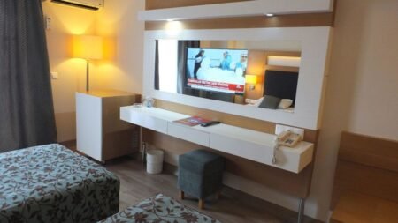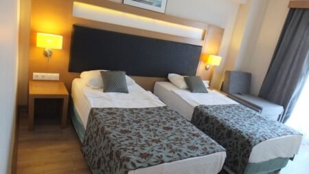 Marbel Hotel by Palm Wings: jouw vakantieoase in Kusadasi! Laat je verrassen door het Marbel Hotel by Palm Wings, in het centrum van het bruisende Kusadasi en op 2 kilometer afstand van Ladies Beach. En met winkels, restaurants en bars op 1 kilometer, heb je alles wat je nodig hebt. Maar dat is nog niet alles. Laat je smaakpapillen dansen in het buffetrestaurant, waar heerlijke gerechten worden geserveerd of geniet van verfrissende drankjes in een van de drie bars. Of je nu op zoek bent naar actie of ontspanning, bij Marbel Hotel by Palm Wings vind je het allemaal. Train in onze fitnessruimte, speel een potje basketbal, volleybal, darts, voetbal, biljart, tafeltennis of tennis. Ontspan in het Turks bad of de sauna, of verwen jezelf met een rustgevende massage. Ook de kleintjes worden bij Marbel Hotel by Palm Wings verwend. Laat ze spelen in het kinderbad, genieten van het kinderentertainment of laat ze een verfrissende duik in het buitenzwembad nemen en ontspan zelf lekker op het uitnodigende zonneterras. Boek nu je verblijf bij Marbel Hotel by Palm Wings en laat je verwennen in dit paradijs van rust en comfort in Kusadasi!