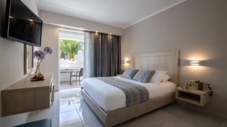 Dit hotel op Zakynthos heeft een goede ligging en is zeer geschikt voor families. Je bent snel op het strand en je staat zo naast de winkels en restaurants van het centrum van Kalamaki. Er zijn maar liefst twee zwembaden waar je de hele dag kunt relaxen. En er is ook een paradijs voor de kinderen. Namelijk het kinderzwembad met waterspeelhuis. Elke ochtend staat er een lekker ontbijt voor je klaar en ook 's avonds ga je smullen van het buffet. De kamers stralen rust uit en zo kun je tijdens je vakantie helemaal ontspannen. En de sportievelingen kunnen basketballen, voetballen of tafeltennissen.