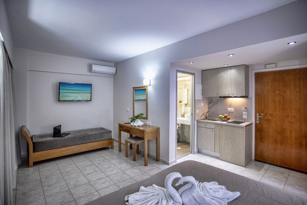 Zomer Wanneer je tussen 25-04-2025 en 31-10-2025 in deze accommodatie verblijft, is onderstaande informatie van toepassing. * Ligging * Aan het openbare strand (Pavlos) * Zandstrand * Dichtstbijzijnde winkel op circa 100 meter * Dichtstbijzijnde restaurant op circa 100 meter * Dichtstbijzijnde bar op circa 100 meter * Bushalte op circa 100 meter * Taxistandplaats op circa 150 meter * Algemeen & faciliteiten * 6 gebouwen * Maximaal 2 verdiepingen * 40 kamers * Receptie * 24 uur per dag * Lobby * Bagageruimte * Wifi in alle openbare ruimtes * Doktersservice tegen betaling * op aanvraag * Tuin * Privé parkeergelegenheid * Openbare parkeergelegenheid * Restaurants & bars * Ontbijtruimte * Poolbar * Activiteiten & ontspanning * Biljart * Fitness * Spafaciliteiten * Sauna * Gameroom * Zwembaden * 2 buitenzwembaden * Zoetwater * Buitenzwembad voor kinderen * Zoetwater * Zonneterras * Ligbedden met matrasjes * Parasol * Badhanddoekenservice gratis met borg * Kinderfaciliteiten * Babybedje op aanvraag via ons contact center * Verzorging * Logies * Logies & Ontbijt * Ontbijt in buffetvormHotelkamers * Suite U1 * Oppervlakte van circa 40 m² * Zwembadzicht * Woon-/slaapkamer * Slaapbank voor twee personen * Eén slaapkamer * Airconditioning * Kluisje * Televisie * Telefoon tegen betaling * Kitchenette * 2-pits kooktoestel * Broodrooster * Koffie- en theefaciliteiten * Koelkast * Badkamer douche, toilet, föhn en badslippers * Wifi * Balkon of terras (zitje) * Suite Standaard Zwembadzicht UZP * Oppervlakte van circa 42 m² * Zwembadzicht * Woon-/slaapkamer * Slaapbank voor twee personen * Eén slaapkamer * Airconditioning * Kluisje * Televisie * Telefoon tegen betaling * Kitchenette * 2-pits kooktoestel * Broodrooster * Koffie- en theefaciliteiten * Koelkast * Badkamer douche, toilet, föhn en badslippers * Wifi * Balkon of terras (zitje) * Studio Standaard SZ * Oppervlakte circa 25 m² * Tuinzicht * Airconditioning * Kluisje * Televisie * Telefoon tegen betaling * Kitchenette * 2-pits kooktoestel * Broodrooster * Koffie- en theefaciliteiten * Koelkast * Badkamer douche, toilet, föhn en badslippers * Wifi * Balkon of terras (zitje) * Studio Standaard Zwembadzicht SZP * Oppervlakte van circa 28 m² * Zwembadzicht * Airconditioning * Kluisje * Televisie * Telefoon tegen betaling * Kitchenette * 2-pits kooktoestel * Broodrooster * Koffie- en theefaciliteiten * Koelkast * Badkamer douche, toilet, föhn en badslippers * Wifi * Balkon of terras (zitje) * Studio Deluxe SD1 * Oppervlakte van circa 28 m² * Zwembadzicht * Airconditioning * Kluisje * Televisie * Telefoon tegen betaling * Kitchenette * 2-pits kooktoestel * Broodrooster * Koffie- en theefaciliteiten * Koelkast * Badkamer douche, toilet, föhn en badslippers * Wifi * Balkon of terras (zitje) * Studio Deluxe Zwembadzicht SDP * Oppervlakte van circa 28 m² * Zwembadzicht * Airconditioning * Kluisje * Televisie * Telefoon tegen betaling * Kitchenette * 2-pits kooktoestel * Broodrooster * Koffie- en theefaciliteiten * Koelkast * Badkamer douche, toilet, föhn en badslippers * Wifi * Balkon of terras (zitje) * 2-kamerappartement 2A1 * Oppervlakte van circa 40 m² * Tuin- of zwembadzicht * Woon-/slaapkamer * Slaapbank voor twee personen * Eén slaapkamer * Airconditioning * Kluisje * Televisie * Telefoon tegen betaling * Kitchenette * 2-pits kooktoestel * Broodrooster * Koffie- en theefaciliteiten * Koelkast * Badkamer douche, toilet, föhn en badslippers * Wifi * Balkon of terras (zitje) * 3-kamerappartement 3A1 * Oppervlakte van circa 90 m² * Zwembadzicht * Woon-/slaapkamer * Slaapbank voor twee personen * 2 slaapkamers * Airconditioning * Kluisje * Televisie * Telefoon tegen betaling * Kitchenette * Meerdere-pits kooktoestel * Broodrooster * Koffie- en theefaciliteiten * Koelkast * Badkamer douche, toilet, föhn en badslippers * Wifi * Balkon of terras (zitje)