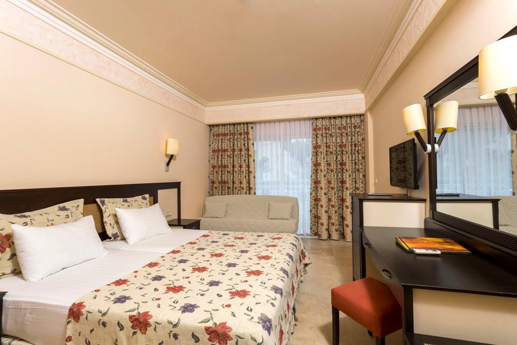 Zomer Wanneer je tussen 01-04-2025 en 31-10-2025 in deze accommodatie verblijft, is onderstaande informatie van toepassing. * Ligging * Privéstrand * Aan een boulevard * Ligbedden * Parasol * Dichtstbijzijnde winkel op circa 100 meter * Dichtstbijzijnde restaurant op circa 100 meter * Dichtstbijzijnde bar op circa 100 meter * Side op circa 2 kilometer * Manavgat op circa 8 kilometer * Bushalte op circa 100 meter * Algemeen & faciliteiten * 19 gebouwen * Maximaal 3 verdiepingen * 242 kamers * Receptie * 24 uur per dag * Lobby * 2 liften * Niet in elk gebouw een lift * Bagageruimte * Wifi in alle openbare ruimtes * Meerdere winkels * Minimarkt * Wasservice tegen betaling * Doktersservice tegen betaling * Tuin * Privé parkeergelegenheid * Restaurants & bars * Buffetrestaurant * 3 à-la-carterestaurants * Restaurant met internationale specialiteiten * Turks restaurant * Visrestaurant * 3 drinkgelegenheden * Discobar * Lobbybar * Poolbar * Activiteiten & ontspanning * Aerobics * Basketbal * Beachvolleybal * Biljart * Boccia * Darts * Fitness * Midgetgolf * Squash * Tafeltennis * Tafelvoetbal * Tennis * Watersporten tegen betaling * Yoga * Spafaciliteiten * Sauna * Turks stoombad * Massages tegen betaling * Schoonheidsbehandelingen tegen betaling * Discotheek * Animatie * 6 keer per week * Shows * 6 keer per week * Livemuziek * 2 keer per week * Zwembaden * 2 buitenzwembaden * Eén van deze zwembaden heeft 4 glijbanen * Gesloten in het winterseizoen * 2 buitenzwembaden voor kinderen * Eén van deze zwembaden heeft een glijbaan * Gesloten in het winterseizoen * Zonneterras * Ligbedden * Parasol * Badhanddoekenservice * Kinderfaciliteiten * Mini club (4-12 jaar) * Gesloten in het winterseizoen * 6 keer per week * Teenage club (13-16 jaar) * Gesloten in het winterseizoen * 6 keer per week * Minidisco * Gesloten in het winterseizoen * Buitenspeeltuin * Babybedje op aanvraag via ons contact center * Verzorging * All Inclusive * Ontbijt in buffetvorm (07.00-10.00 uur) * Laat ontbijt in buffetvorm (10.00-11.00 uur) * Lunch in buffetvorm (12.30-14.30 uur) * Diner in buffetvorm (19.00-21.00 uur) * Dineren in één van de à-la-carterestaurants 1 keer per verblijf * Snacks (12.30-16.00 uur) * Koffie, thee & koekjes (16.30-17.30 uur) * IJs (12.00-16.30 uur) * Middernachtsnack (23.00-00.00 uur) * Selectie lokale (non-)alcoholische drankjes (10.00-00.00 uur) * Tegen betaling: import drankjes * Goed om te weten * Duurzaamheidslabel(s): Green KeyHotelkamers * 2-persoonskamer D1 * Oppervlakte van circa 45 m² * Airconditioning * Kluisje * Satelliettelevisie * Telefoon tegen betaling * Eet- en drinkfaciliteiten * Koffie- en theefaciliteiten * Minibar * Badkamer douche in bad, toilet en föhn * Wifi * Balkon of terras (zitje) * 2-persoonskamer Standaard DZ * Oppervlakte van circa 25 m² * Airconditioning * Kluisje * Satelliettelevisie * Telefoon tegen betaling * Eet- en drinkfaciliteiten * Koffie- en theefaciliteiten * Minibar * Badkamer bad of douche, toilet en föhn * Wifi * Balkon (zitje) * 2-persoonskamer Standaard Club DZC * Oppervlakte tussen 18 en 20 m² * Airconditioning * Kluisje * Satelliettelevisie * Telefoon tegen betaling * Eet- en drinkfaciliteiten * Koffie- en theefaciliteiten * Minibar * Badkamer bad of douche, toilet en föhn * Wifi * Balkon of terras (zitje) * 2-persoonskamer Superior DS * Oppervlakte van circa 32 m² * Airconditioning * Kluisje * Satelliettelevisie * Telefoon tegen betaling * Eet- en drinkfaciliteiten * Koffie- en theefaciliteiten * Minibar * Badkamer bad of douche, toilet en föhn * Wifi * Balkon of terras (zitje) * 2-persoonskamer Superior Swimup DSZ * Oppervlakte tussen 25 en 32 m² * Zwembadzicht * Airconditioning * Kluisje * Satelliettelevisie * Telefoon tegen betaling * Eet- en drinkfaciliteiten * Koffie- en theefaciliteiten * Minibar * Badkamer bad of douche, toilet en föhn * Wifi * Terras (zitje) * Directe toegang tot het gedeelde zwembad * 2-persoonskamer Deluxe (Grand) DD1 * Airconditioning * Kluisje * Satelliettelevisie * Telefoon tegen betaling * Eet- en drinkfaciliteiten * Koffie- en theefaciliteiten * Minibar * Badkamer bad of douche, toilet en föhn * Wifi * Balkon of terras (zitje) * 2-persoonskamer Large DL * Oppervlakte van circa 26 m² * Airconditioning * Kluisje * Televisie * Telefoon tegen betaling * Eet- en drinkfaciliteiten * Koffie- en theefaciliteiten * Minibar * Badkamer bad of douche, toilet en föhn * Wifi * Balkon of terras (zitje)