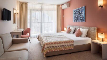 Je zonvakantie breng je door onder de Bulgaarse zonnestralen in dit fijne hotel. Neem je je kleine avonturiers mee op sleeptouw, dan is het hotel ook voor hen een waar paradijs. Hier is er voor iedereen wel een zwembad naar wens. Je kids plonzen in het kinderbad of sjezen van de glijbanen in het mini waterpark. Maar ben je in Sunny Beach, dan kan je de stranden natuurlijk niet overslaan. Heb je trek gekregen, dan schuif je aan in het restaurant Nessebar. Je vakantie heb je geboekt op basis van All Inclusive. Hoe fijn is het dat je zoveel kunt proeven als je wilt? In de avond maak je een romantische wandeling op het strand of zoek je het bruisende nachtleven van Sunny Beach op.