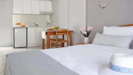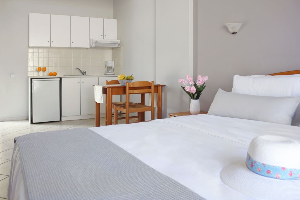 Eenvoudig en erg charmant, dat is Melina Appartementen. Zeer centraal gelegen op Kreta op slechts 70 meter van het openbare strand. Hier heb je een echte relaxvakantie. Lekker luieren naast het zwembad of een wandeling door het centrum maken. Je verblijft op basis van logies en de appartementen zijn uitgerust met een kleine keuken. Je bepaalt zelf wanneer je wilt ontbijten of dineren. Melina Appartementen heeft een eigen à-la-carterestaurant waar je geniet van de Griekse keuken. Zon, zee en lekker eten dat is alles wat je nodig hebt voor een ontspannen vakantie. TIP: boek deze vakantie als Fly & Go * Gemak voorop: pakketreis met vlucht + deze accommodatie + huurauto * De verzekering voor je auto is geregeld * Vrijheid en avontuur: ontdek in je eigen tempo je vakantiebestemming Bekijk deze Fly & Go vakantie ()