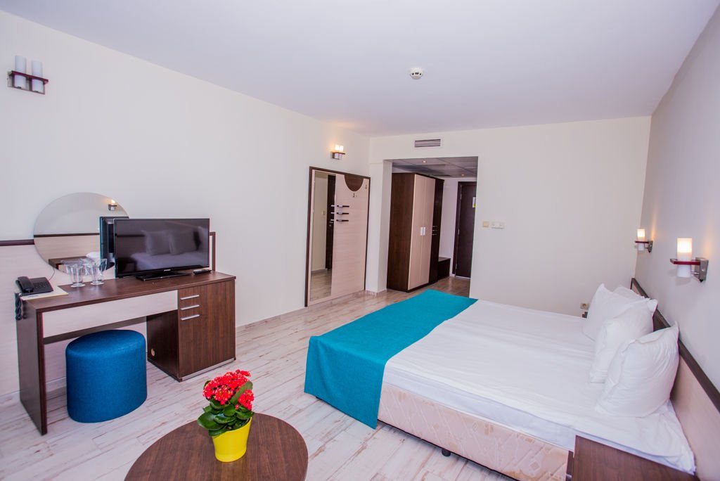 Zomer Wanneer je tussen 15-05-2025 en 30-09-2025 in deze accommodatie verblijft, is onderstaande informatie van toepassing. * Ligging * Openbaar strand op circa 200 meter * Zandstrand * Weg tussen het strand en de accommodatie * Dichtstbijzijnde winkel op circa 100 meter * Dichtstbijzijnde restaurant op circa 100 meter * Dichtstbijzijnde bar op circa 100 meter * Aquapark op circa 1 kilometer * Fun-Fair op circa 1 kilometer * Horse base op circa 3 kilometer * Nessebar op circa 3 kilometer * Bushalte op circa 20 meter * Taxistandplaats op circa 0 meter * Treinstation op circa 35 kilometer * Algemeen & faciliteiten * 1 gebouw * Maximaal 12 verdiepingen * 266 kamers * Receptie * 24 uur per dag * Lobby * 5 liften * Bagageruimte * Wifi in diverse openbare ruimtes * Wasservice tegen betaling * Doktersservice tegen betaling * Tuin * Privé parkeergelegenheid tegen betaling * Restaurants & bars * 2 buffetrestaurants gratis voor all inclusive gasten * Themabuffetten * Roomservice tegen betaling * 5 drinkgelegenheden * 4 bars * Poolbar * Activiteiten & ontspanning * Aerobics * Beachvoetbal * Biljart tegen betaling * Darts * Tafeltennis * Yoga * Spa Center * Sauna tegen betaling * Hamam tegen betaling * Bubbelbad binnen tegen betaling * Massages tegen betaling * Schoonheidsbehandelingen tegen betaling * Kapsalon tegen betaling * Fitnessruimte tegen betaling * Animatie voor volwassenen en kinderen * 6 keer per week * Shows * 2 keer per week * Zwembaden * Buitenzwembad * Zoetwater * Buitenzwembad voor kinderen * Zoetwater * Zonneterras * Ligbedden met matrasjes gratis * Parasol gratis * Badhanddoekenservice tegen betaling en met borg * Kinderfaciliteiten * Mini club (3-12 jaar) * 6 keer per week * Minidisco * Buitenspeeltuin * Babybedje op aanvraag via ons contact center tegen betaling * Verzorging * Logies & Ontbijt * Ontbijt in buffetvorm (08.00-10.30 uur) * Halfpension * Ontbijt in buffetvorm (08.00-10.30 uur) * Diner in buffetvorm (18.00-21.00 uur) * All Inclusive * Ontbijt in buffetvorm (08.00-10.00 uur) * Laat ontbijt in buffetvorm (10.00-10.30 uur) * Lunch in buffetvorm (12.30-14.30 uur) * Diner in buffetvorm (18.00-21.00 uur) * Snacks (15.00-17.00 uur) * Koffie, thee & koekjes (15.00-17.00 uur) * IJs (15.00-17.00 uur) * Selectie lokale (non-)alcoholische drankjes (11.00-23.00 uur) * Goed om te weten * Huisdieren zijn toegestaan tegen betaling * Geen verplichte borg bij het incheckenHotelkamers * 2-persoonskamer Standaard DZ * Formaat kan afwijken ten opzichte van andere kamertypes * Uitzicht kan afwijken ten opzichte van andere kamertypes * Oppervlakte tussen 18 en 22 m² * Landzicht * Zijzeezicht * Zwembadzicht * Airconditioning * Satelliettelevisie * Telefoon tegen betaling * Eet- en drinkfaciliteiten * Koelkast * Badkamer met douche, toilet en föhn * Wifi tegen betaling * Balkon of terras (zitje) * Tegen een meerprijs kun je verblijven op basis van * 2-persoonskamer Superior DS * Formaat kan afwijken ten opzichte van andere kamertypes * Uitzicht kan afwijken ten opzichte van andere kamertypes * Oppervlakte tussen 20 en 24 m² * Landzicht * Zijzeezicht * Zwembadzicht * Airconditioning * Satelliettelevisie * Telefoon tegen betaling * Eet- en drinkfaciliteiten * Koelkast * Badkamer met douche, toilet en föhn * Wifi tegen betaling * Balkon of terras (zitje) * Tegen een meerprijs kun je verblijven op basis van * 2-persoonskamer Deluxe DD * Oppervlakte tussen 20 en 24 m² * Zijzeezicht * Zwembadzicht * Zee- of zwembadzijde * Airconditioning * Satelliettelevisie * Telefoon tegen betaling * Eet- en drinkfaciliteiten * Koffie- en theefaciliteiten * Koelkast * Minibar tegen betaling * Badkamer met douche, toilet en föhn * Wifi tegen betaling * Balkon of terras (zitje) * Tegen een meerprijs kun je verblijven op basis van