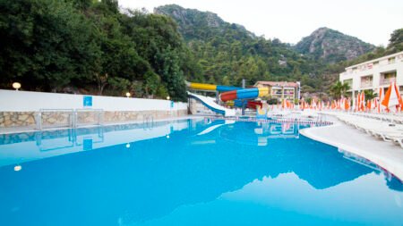 Direct naar: * Ligging () * Faciliteiten () * Restaurants & Bars () * Hotelkamers () * Sport & Ontspanning () * Kinderfaciliteiten () * Zwembaden & Strand () * Verzorging () Ligging: Mirage World * Gelegen in Icmeler * Op ca. 80 meter van het privéstrand * Bushalte op loopafstand * Winkels, restaurants en bars op ca. 100 meter Faciliteiten * 5 gebouwen met maximaal 5 verdiepingen * In elk gebouw is een lift aanwezig * 374 kamers * 24-uursreceptie * Bagageruimte * Lobby * Tuin * Gratis wifi in de openbare ruimtes * Kapsalon* * Winkeltjes en minimarkt* * Wasservice* * Doktersservice* op aanvraag * Openbare en privé parkeergelegenheid *Tegen betaling Restaurants & bars * 1 buffetrestaurant * 4 bars Hotelkamers * Standaardkamer (1-4 personen) * Ca. 17-25 m² * Telefoon* * Airconditioning * Satelliettelevisie * Minibar (gevuld met water) * Kluisje* * Wifi * Douche * Toilet * Föhn * Balkon met zitje * De voordeelkamer (2-3 personen) kan qua faciliteiten, grootte en ligging afwijken van de standaardkamer *Tegen betaling * Deluxe kamer (1-4 personen) * Ruimer dan de standaardkamer * Bestaat uit 1 ruimte * Dezelfde faciliteiten als de standaardkamer * Tegen een meerprijs kun je een deluxe kamer met bubbelbad boeken (2-4 personen) * Loft (2-5 personen) * Gelegen op de bovenste verdieping * Bestaat uit 2 verdiepingen met op beide verdiepingen een slaapkamer en er is 1 badkamer * Dezelfde faciliteiten als de standaardkamer * Familiekamer (3-5 personen) * Bestaat uit 2 ruimtes * Dezelfde faciliteiten als de standaardkamer Sport & Ontspanning * Fitness * Aerobics * Yoga * Beachvolleybal * Darts * Tafeltennis * Gameroom* * Duikcenter* * Watersporten aan het strand* * Turks bad * Sauna * Massages* * Er wordt 6 dagen per week beperkt entertainment aangeboden *Tegen betaling Kinderfaciliteiten * 4 kinderzwembaden * Miniclub 6 dagen per week (4-12 jaar) * Minidisco 6 dagen per week * Speeltuintje * Babybedjes (op aanvraag) Zwembaden & Strand * 3 buitenzwembaden * 1 buitenzwembad met 5 glijbanen (op vaste tijden geopend) * Zonneterras * Privéstrand * Ligbedden, matrasjes en parasols gratis (zwembad en strand) * Badhanddoekenservice met borg Verzorging Zomer : Mirage World * Verblijf o.b.v. All Inclusive: * Ontbijt in buffetvorm (07.00-10.00 uur) * Laat ontbijt in buffetvorm (10.00-10.30 uur) * Lunch in buffetvorm (12.30-14.00 uur) * Diner in buffetvorm (19.00-21.00 uur) * Snacks (12.00-17.00 uur) * Koffie/thee en koekjes (17.00-18.00 uur) * IJs (19.00-21.00 uur) * Nachtsnacks (00.00-01.00 uur) * Geselecteerde lokale alcoholische en alcoholvrije drankjes van 10.00 tot 00.00 uur * Tegen betaling: import drankjes, Turkse koffie en verse vruchtensappen