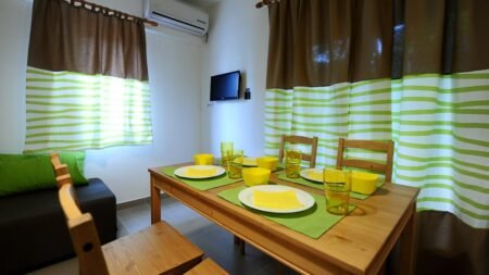 Dit appartementencomplex ligt op steenworp afstand van het strand. Het complex ligt dichtbij het meer van Ohrid en bestaat uit twee etages en de appartementen zijn ruim, sfeervol en kleurrijk ingericht. De appartementen zijn van alle gemakken voorzien en hebben een terras of balkon. Maar je blijft natuurlijk niet in je appartement zitten, want je wilt ook de omgeving leren kennen. Het meer van Ohrid is trouwens één van de drie oudste meren ter wereld, wist je dat? In het oude stadje Ohrid kun je eindeloos slenteren door de smalle straatjes en de uitzichten over het meer zijn verbluffend. Denk er ook eens over om een excursie te boeken, bijvoorbeeld een dagtocht naar Albanië. Daar kom je toch ook niet elke dag.