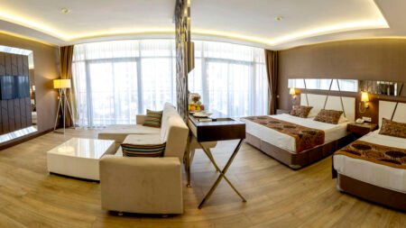 My Home Resort in Alanya is een te gekke familieplek met een ongedwongen sfeer. Dit Ultra All Inclusive 5-sterrenhotel is een waar paradijs met plezier voor jong en oud. Hier voel je je al snel thuis door de warme gastvrijheid van het personeel en geniet je op zijn best. Relaxen aan de Turkse Rivièra doe je hier! Het hotel beschikt over comfortabele (familie)kamers en suites met een eigentijdse stijl, moderne voorzieningen en een vleugje Turkse flair. Ook heb je de mogelijkheid tot het boeken van een swim-up kamer, zodat je 's ochtends meteen een frisse duik kunt nemen vanaf je eigen balkon en dus zó in het water plonst. Bij de jongste vakantiegangers vliegt de tijd voorbij in de miniclub, met het roetsjen van de glijbanen en ook de allerkleinsten hebben spetterpret in het aparte kinderbad. Dit terwijl jij geniet van een smakelijke cocktail onder de warme zon. Toe aan wat me-time? Wandel in een paar minuten naar het fijne privéstrand met azuurblauwe zee of ga naar het Turks bad, waar je je onder laat dompelen in rust en ontspanning. Smaakvol dineren doe je in het buffet- of het à-la-carte restaurant en de liefhebbers kunnen zelfs nog een dansje wagen in de disco. Je leest het al, My Home Resort is perfect voor het hele gezin! Kom jij ook?