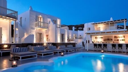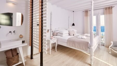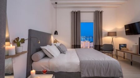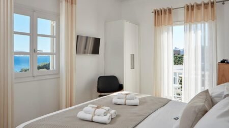 Dit charmante hotel ligt op een kleine heuvel met uitzicht op de eindeloze Egeïsche Zee. Vijf minuten lopen en je staat met je tenen in het zachte zand van Agios Stéfanos, terwijl de zon je verwent. Het hotel combineert strak, minimalistisch design met pure eilandcharme. Geniet van spectaculaire zonsondergangen en laat je smaakpapillen dansen in het zwembadrestaurant met verse vis, lokale producten en creatieve gerechten. Plons in het zwembad, nip van een cocktail en laat een massage je opladen. Hier leef je echt in vakantietempo relaxen, ontdekken en genieten.