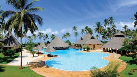 Winter Wanneer je tussen 01-10-2024 en 31-03-2025 in deze accommodatie verblijft, is onderstaande informatie van toepassing. * Ligging * Aan het openbare strand * Zandstrand * Centrum op circa 2 kilometer * Pwani Mchangani op circa 2 kilometer * Algemeen & faciliteiten * 194 kamers * Receptie * 24 uur per dag open * Lobby * Wifi in alle openbare ruimtes * Meerdere winkels * Wasservice tegen betaling * Medische service tegen betaling * Tuin * Openbare parkeergelegenheid * Restaurants & bars * Buffetrestaurant * 4 à-la-carterestaurants * Snackbar * Bar * Activiteiten & ontspanning * Aquagym * Beachvolleybal * Biljart * Darts * Fitness * Tafeltennis * Watersporten * Yoga * Spafaciliteiten * Sauna tegen betaling * Stoombad tegen betaling * Massages tegen betaling * Schoonheidsbehandelingen tegen betaling * Animatie * Zwembaden * Buitenzwembad * Buitenzwembad voor kinderen * Terras * Ligbedden * Parasol * Badhanddoekenservice * Kinderfaciliteiten * Babysitservice tegen betaling * ter plaatse op aanvraag * Verzorging * All Inclusive * Ontbijt in buffetvorm (07.00-09.30 uur) * Lunch in buffetvorm (12.30-14.30 uur) * Diner in buffetvorm (19.00-21.30 uur) * Snacks * Koffie, thee & koekjes * Selectie lokale (non-)alcoholische drankjes (10.00-00.00 uur) * Niet inbegrepen: * Consumpties inHotelkamers * 2-persoonskamer Deluxe DD1 * Gedeeltelijk zeezicht * Airconditioning * Kluisje * Televisie * Eet- en drinkfaciliteiten * Koffie- en theefaciliteiten * Minibar * Badkamer met inloopdouche, toilet en föhn * Wifi * Balkon of terras (zitje) * 2-persoonskamer Deluxe Strandzijde DD3 * Gedeeltelijk zeezicht * Airconditioning * Kluisje * Televisie * Telefoon * Eet- en drinkfaciliteiten * Koffie- en theefaciliteiten * Minibar * Badkamer met inloopdouche, toilet en föhn * Balkon of terras (zitje) * 2-persoonskamer Deluxe Gedeeltelijk zeezicht Zeezijde DD2 * Gedeeltelijk zeezicht * Airconditioning * Kluisje * Televisie * Telefoon * Eet- en drinkfaciliteiten * Koffie- en theefaciliteiten * Minibar * Badkamer met inloopdouche, toilet en föhn * Wifi * Balkon of terras (zitje) * 2-persoonskamer Deluxe Tuinzicht DDG * Oppervlakte van circa 55 m² * Tuinzicht * Airconditioning * Kluisje * Televisie * Eet- en drinkfaciliteiten * Koffie- en theefaciliteiten * Minibar * Badkamer met inloopdouche, toilet en föhn * Wifi * Balkon of terras (zitje) * 2-persoonskamer Beach Front Deluxe DAD * Oppervlakte van circa 100 m² * Gelegen aan het zwembad * Gedeeltelijk zeezicht * Apart zitgedeelte * Airconditioning * Kluisje * Televisie * Telefoon * Eet- en drinkfaciliteiten * Koffie- en theefaciliteiten * Minibar * Badkamer met inloopdouche, bubbelbad, toilet en föhn * Balkon of terras (zitje)
