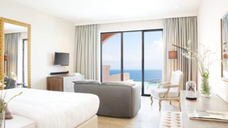 Zomer Wanneer je tussen 17-04-2025 en 31-10-2025 in deze accommodatie verblijft, is onderstaande informatie van toepassing. * Ligging * Privéstrand op circa 100 meter * Centrum van Corfu stad op circa 16 kilometer * Centrum van Agios Loannis Peristeron op circa 2,5 kilometer * Dichtstbijzijnde winkel op circa 2,5 kilometer * Dichtstbijzijnde restaurant op circa 2,5 kilometer * Dichtstbijzijnde bar op circa 2,5 kilometer * Bushalte * Algemeen & faciliteiten * Adults Only (minimumleeftijd 16 jaar) * Meerdere gebouwen * Maximaal 2 verdiepingen * 70 kamers * Receptie * 24 uur per dag * Lobby * Geen liften * Wifi in alle openbare ruimtes gratis * Wasservice tegen betaling * Doktersservice tegen betaling * Restaurants & bars * Buffetrestaurant * 2 à-la-carterestaurants * 2 drinkgelegenheden * 2 bars * Activiteiten & ontspanning * Duikcentrum tegen betaling * Fitness tegen betaling * Kookles één keer per week gratis * Yoga meerdere keren per week gratis * Spafaciliteiten * Sauna tegen betaling * Turks stoombad tegen betaling * Massages tegen betaling * Schoonheidsbehandelingen tegen betaling * Zwembaden * Buitenzwembad * Infinity pool * Zoetwater * Zonneterras * Ligbedden gratis * Parasol gratis * Badhanddoekenservice gratis * Verzorging * Logies & Ontbijt * Ontbijt in buffetvorm * Halfpension * Ontbijt in buffetvorm * Diner in buffetvorm * Goed om te weten * Duurzaamheidslabel(s): Green KeyHotelkamers * Junior suite Standaard Zeezicht JZM * Oppervlakte circa 30 m² * Zeezicht * Airconditioning tegen betaling * Kluisje gratis * Satelliettelevisie gratis * Eet- en drinkfaciliteiten * Koffie- en theefaciliteiten gratis * Minibar tegen betaling * Badkamer met douche, toilet, föhn, badjassen en badslippers * Wifi gratis * Balkon of terras (zitje) * Junior suite Deluxe Zeezicht Privézwembad JD1 * Zeezicht * Airconditioning tegen betaling * Kluisje * Televisie * Eet- en drinkfaciliteiten * Koffie- en theefaciliteiten * Minibar tegen betaling * Badkamer met douche, toilet, föhn, badjassen en badslippers * Wifi * Terras (zitje, privézwembad) * Late check-out op aanvraag * Inchecken bij een aparte incheckbalie * Welkomstgeschenk * Gratis massage in de spa * Junior suite Deluxe Zeezicht JDM * Zeezicht * Airconditioning tegen betaling * Kluisje * Televisie * Eet- en drinkfaciliteiten * Koffie- en theefaciliteiten * Minibar tegen betaling * Badkamer met douche, toilet, föhn, badjassen en badslippers * Wifi * Balkon of terras (zitje, bubbelbad) * Late check-out op aanvraag * Inchecken bij een aparte incheckbalie * Welkomstgeschenk * Gratis massage in de spa * Junior suite Terras Zeezicht JTM * Oppervlakte circa 60 m² * Zeezicht * Airconditioning * Kluisje gratis * Satelliettelevisie gratis * Eet- en drinkfaciliteiten * Koffie- en theefaciliteiten gratis * Minibar * Badkamer met douche, toilet, föhn, badjassen en badslippers * Wifi gratis * Balkon * Junior suite Privézwembad Zeezicht JOM * Oppervlakte circa 42 m² * Zeezicht * Airconditioning * Kluisje gratis * Satelliettelevisie gratis * Eet- en drinkfaciliteiten * Koffie- en theefaciliteiten gratis * Minibar * Badkamer met douche, toilet, föhn, badjassen en badslippers * Wifi gratis * Terras (privézwembad) * Suite Deluxe Zeezicht UDM * Oppervlakte circa 50 m² * Zeezicht * Airconditioning * Kluisje gratis * Satelliettelevisie gratis * Eet- en drinkfaciliteiten * Koffie- en theefaciliteiten gratis * Minibar * Badkamer met douche, toilet, föhn, badjassen en badslippers * Wifi gratis * Balkon * Late check-out op aanvraag * Inchecken bij een aparte incheckbalie * Welkomstgeschenk * Gratis massage in de spa * Suite Deluxe Terras UDX * Zeezicht * Airconditioning tegen betaling * Kluisje * Televisie * Eet- en drinkfaciliteiten * Koffie- en theefaciliteiten * Minibar tegen betaling * Badkamer met douche, toilet, föhn, badjassen en badslippers * Wifi * Terras (zitje, bubbelbad) * Late check-out op aanvraag * Inchecken bij een aparte incheckbalie * Welkomstgeschenk * Gratis massage in de spa * Suite Privézwembad Zeezicht UOM * Oppervlakte circa 50 m² * Zeezicht * Airconditioning * Kluisje gratis * Satelliettelevisie gratis * Eet- en drinkfaciliteiten * Koffie- en theefaciliteiten gratis * Minibar * Badkamer met douche, toilet, föhn, badjassen en badslippers * Wifi gratis * Terras (privézwembad) * Late check-out op aanvraag * Inchecken bij een aparte incheckbalie * Welkomstgeschenk * Gratis massage in de spa