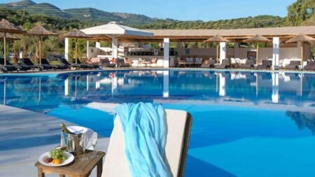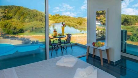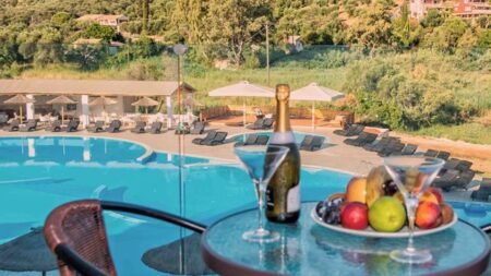 Ninos Laguna Holiday Resort is een heerlijk vakantieadres wat nog niet heel lang geleden haar deuren opende. Het resort ligt vlakbij het strand en het turquoise water van de Ionische Zee en is ideaal om lekker te relaxen. Elke kamer of suite is zo ingericht om jouw verblijf uniek en speciaal te maken. Er is een lekker zwembad met ligstoelen en parasols. Voor de kinderen een apart bad en waterspeelplein. Je kunt een balletje slaan op de tennisbaan of een rondje maken in de fitnessruimte. Tweemaal per dag gaat er een shuttlebus naar het centrum richting Acharavi of Kassiopi. Zo heb je alles bij de hand voor een heerlijke vakantie op het mooie Corfu!