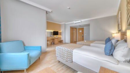 Numa Club Hotel nabij het bruisende Side is dé plek voor een onvergetelijke strandvakantie met het hele gezin! Op slechts 350 meter van het zandstrand duik je zo de zee in. Terug in het hotel kun je heerlijk afkoelen in een van de zes zwembaden. De kinderen kunnen zich uitleven in het kinderbad, op de glijbanen of in de speeltuin en miniclub. Na al dat gespetter is het tijd voor ontspanning. Geniet van een zen-momentje in de Spa of trek baantjes in het zwembad. Sluit je dag af met een smakelijk diner in het buffetrestaurant, en laat je verrassen door de spectaculaire shows van het animatieteam. Met tal van activiteiten zoals beachvolleybal, yoga en aerobics is er voor ieder wat wils. En als je zin hebt in wat extra luxe, kun je heerlijk dineren à-la-carterestaurant. De goede vibes blijven ook 's avonds hangen met live muziek en shows in het hotel. Kortom, Numa Club Hotel is de ideale bestemming voor een zorgeloze vakantie vol plezier en ontspanning aan de Turkse Rivièra!