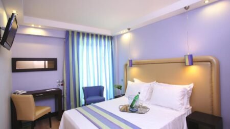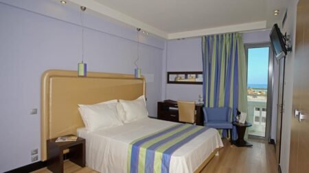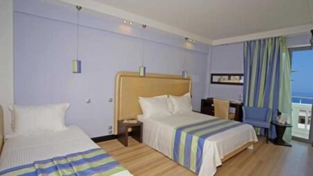Begin je dag met een uitgebreid ontbijtbuffet, waarna je helemaal klaar bent om eropuit te trekken. Binnen enkele minuten wandel je naar een uitgestrekt zandstrand, waar je je handdoek uitrolt en geniet van de warme zonnestralen. Liever wat cultuur opsnuiven? Dwaal dan door sfeervolle straatjes vol historische gebouwen en gezellige tavernes. In de haven proef je de lokale keuken, waar verse vis vaak nog ligt te drogen voordat hij op je bord belandt. Voor wie liever ontspant, biedt het hotel een fijne plek om tot rust te komen. Neem plaats op een ligbed aan het zwembad en laat de zon haar werk doen. Een verfrissende duik in het buitenzwembad zorgt voor de nodige verkoeling. De comfortabele kamers met airconditioning maken je verblijf extra aangenaam. Dit driesterrenhotel is de perfecte uitvalsbasis voor een ontdekkingstocht over het eiland.